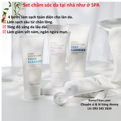 là bộ sản phẩm chăm sóc và vệ sinh da, làm sáng da, ngừa mụn. Với công nghệ chiết xuất từ thiên nhiên, sản phẩm này thích hợp với mọi loại da. Liệu pháp dưỡng da tại nhà đầy hiệu quả như tại SPA. => Với các thành phần thiên nhiên được lựa chọn cẩn thận, bộ sản phẩm cao cấp Atomy Evening Care 4 Set có 4 tuýp: Deep Cleanser, Foam Cleanser, Peeling Gel, Peel off Mask giúp bạn làm sạch da, xóa bỏ các nếp thâm nám, nuôi dưỡng tế bào từ sâu bên trong.