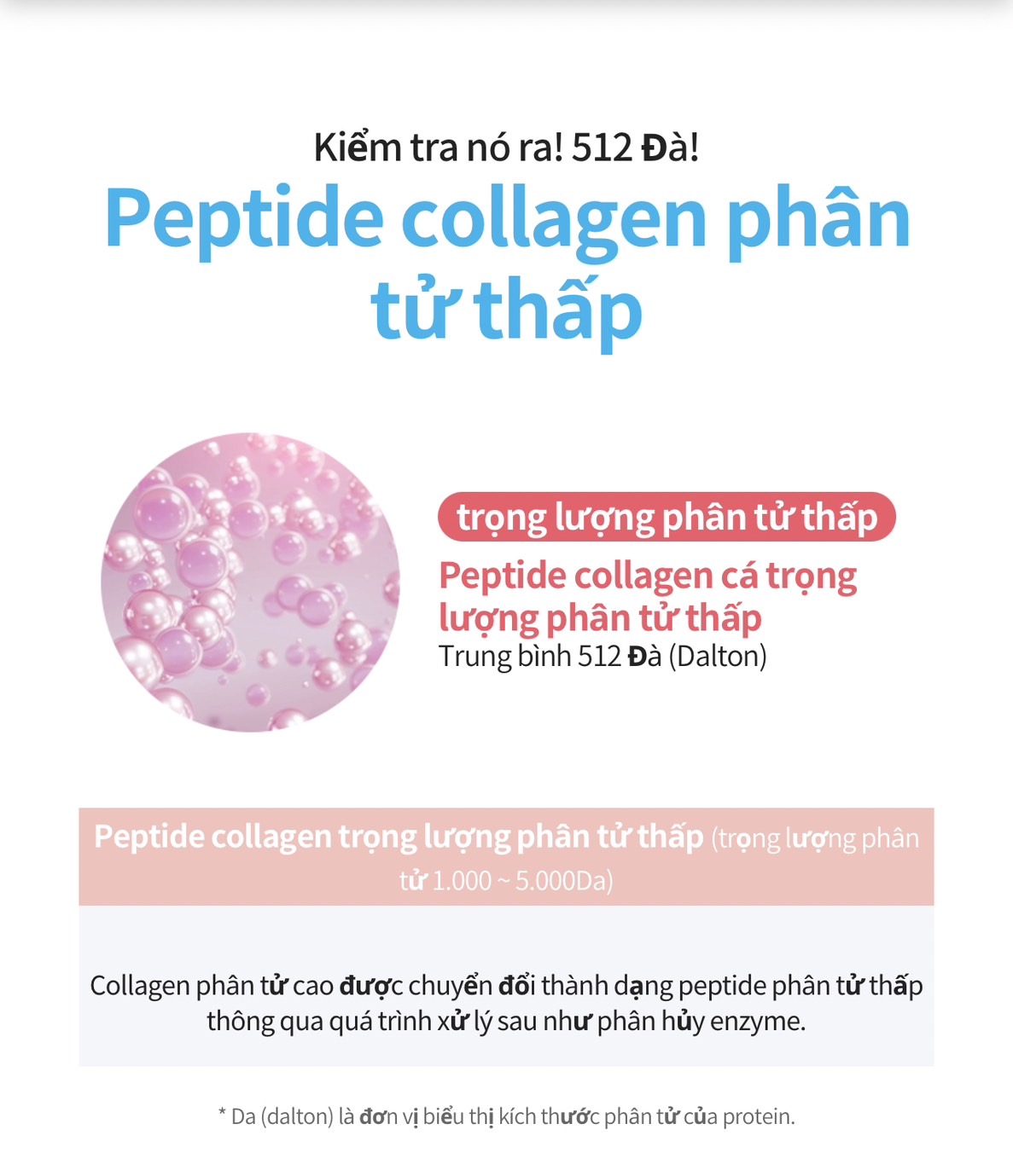 ⭐️⭐️ Collagen dạng nước có phân tử thấp 512 Da nên dễ dàng hấp thu và bổ sung trực tiếp da, tóc, sụn… cho cơ thể.