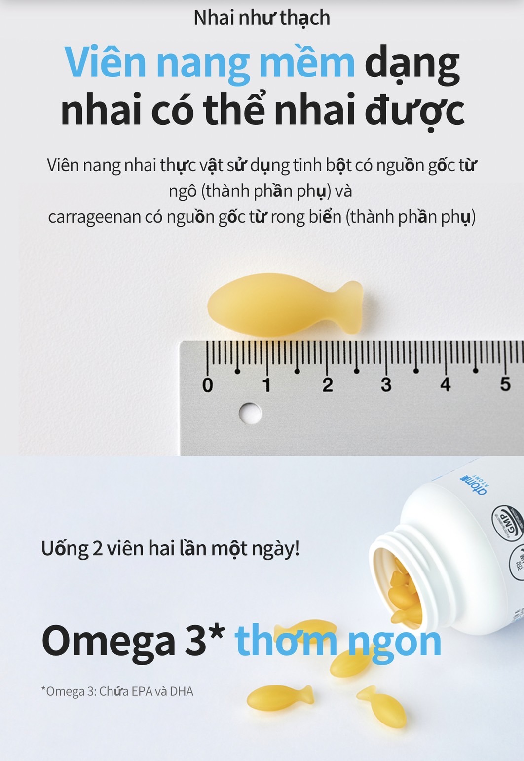- Dầu cá Atomy OMEGA3 được chế biến theo kiểu kẹo dẻo giúp trẻ ăn ngon miệng và thấy thú vị hơn khi trẻ kén ăn. Có vị chua ngọt khi bổ sung dầu chanh.