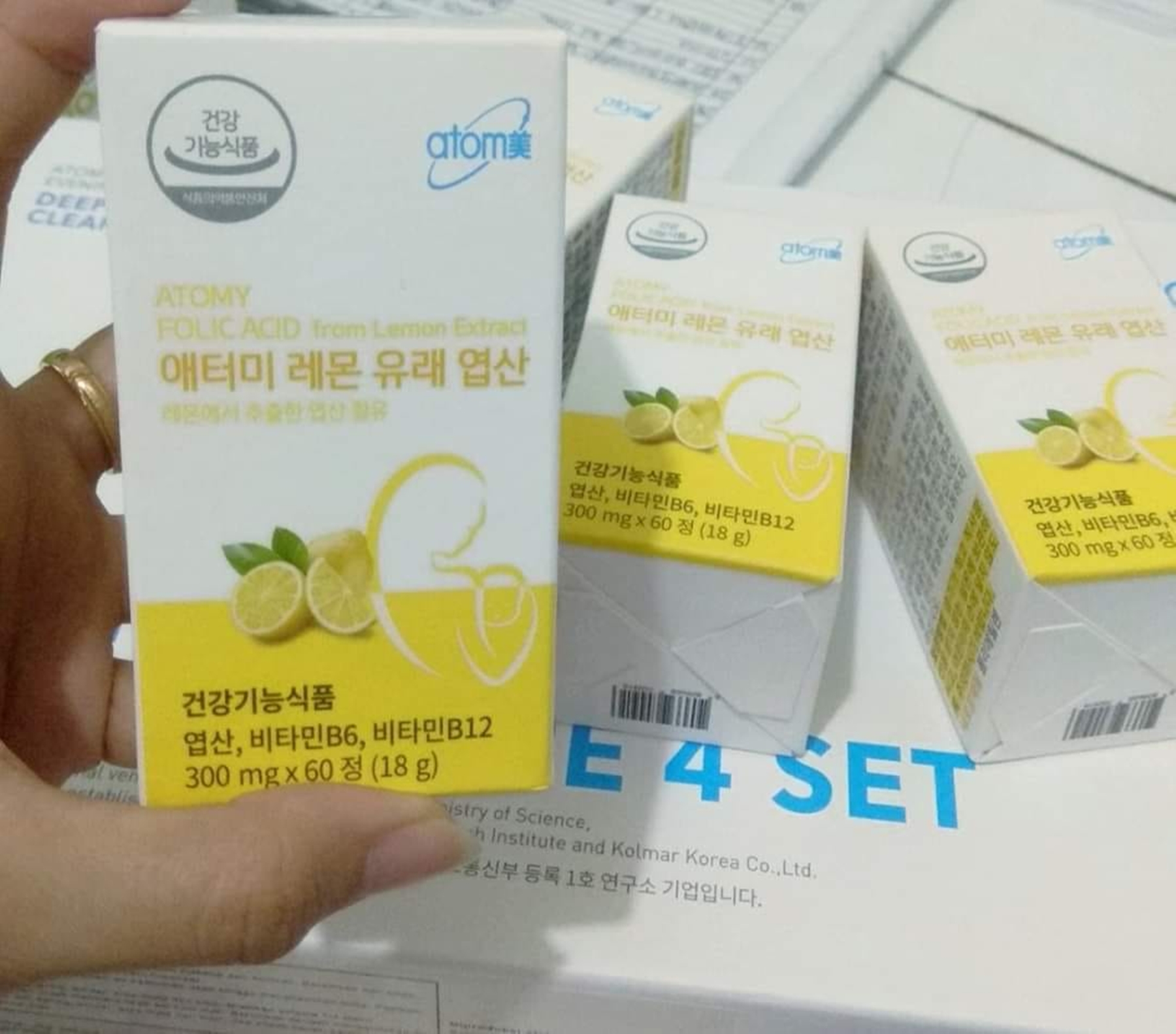 ✅✅ Atomy Folic Acid From Lemon Extract bổ sung Vitamin, B6, B12 và axit folic (Vitamin B9) 100% nhu cầu cơ thể hàng ngày.