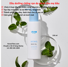 Dầu dưỡng da từ dầu thực vật nhẹ nhàng, không bết dính, không gây kích ứng da đặc biệt dành riêng cho mẹ bầu ở những vùng da dễ rạn nứt: bụng, đùi, ngực 150 ml - Atomy mom & body oil - 애터미 맘앤 바디 오일 -Atomy Масло для мамы и тела