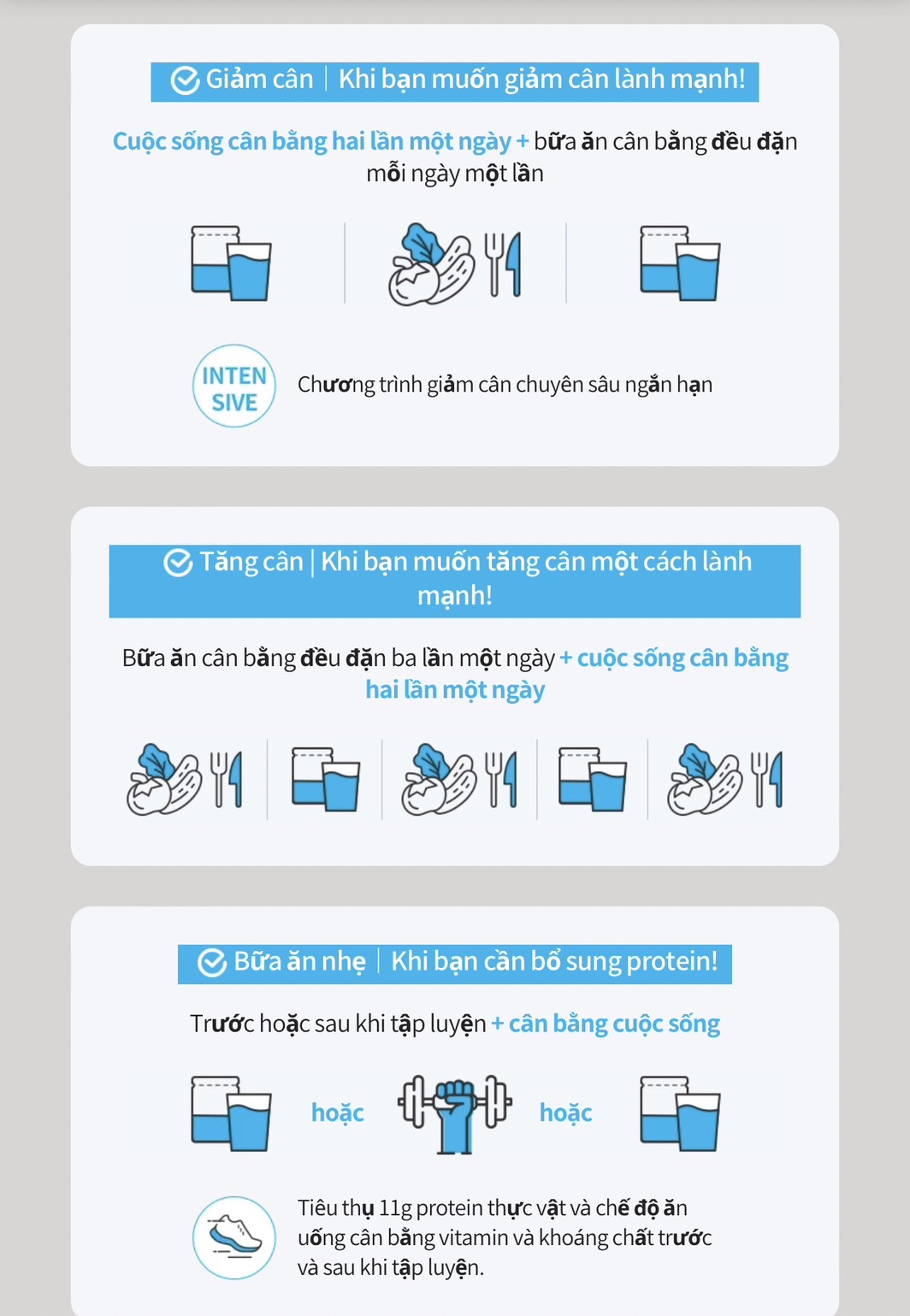 + Bạn muốn duy trì cân nặng hiện tại: dùng 1 hộp Atomy Balance Life thay cho bửa ăn sáng. Buổi trưa và chiều ăn bình thường.