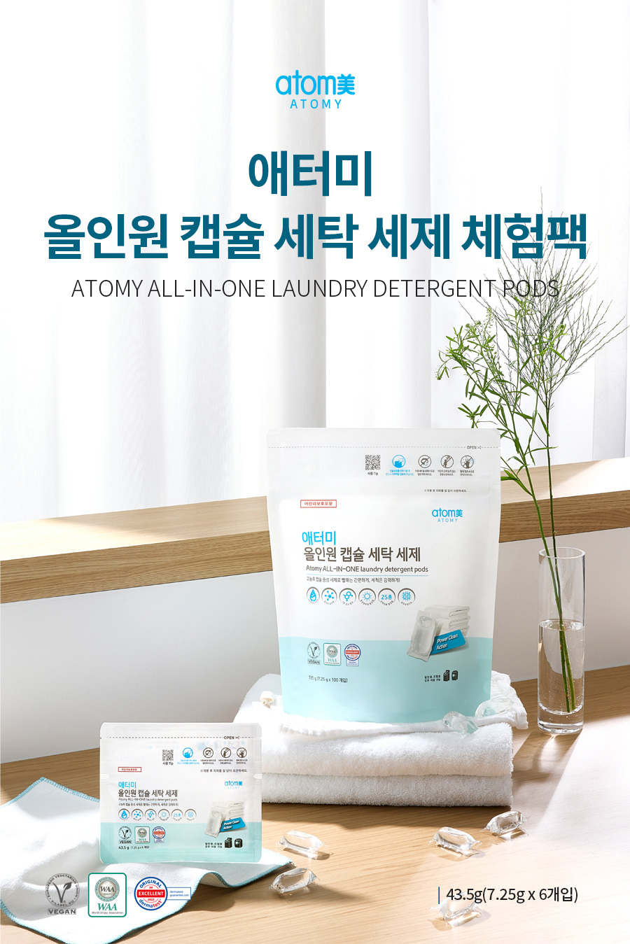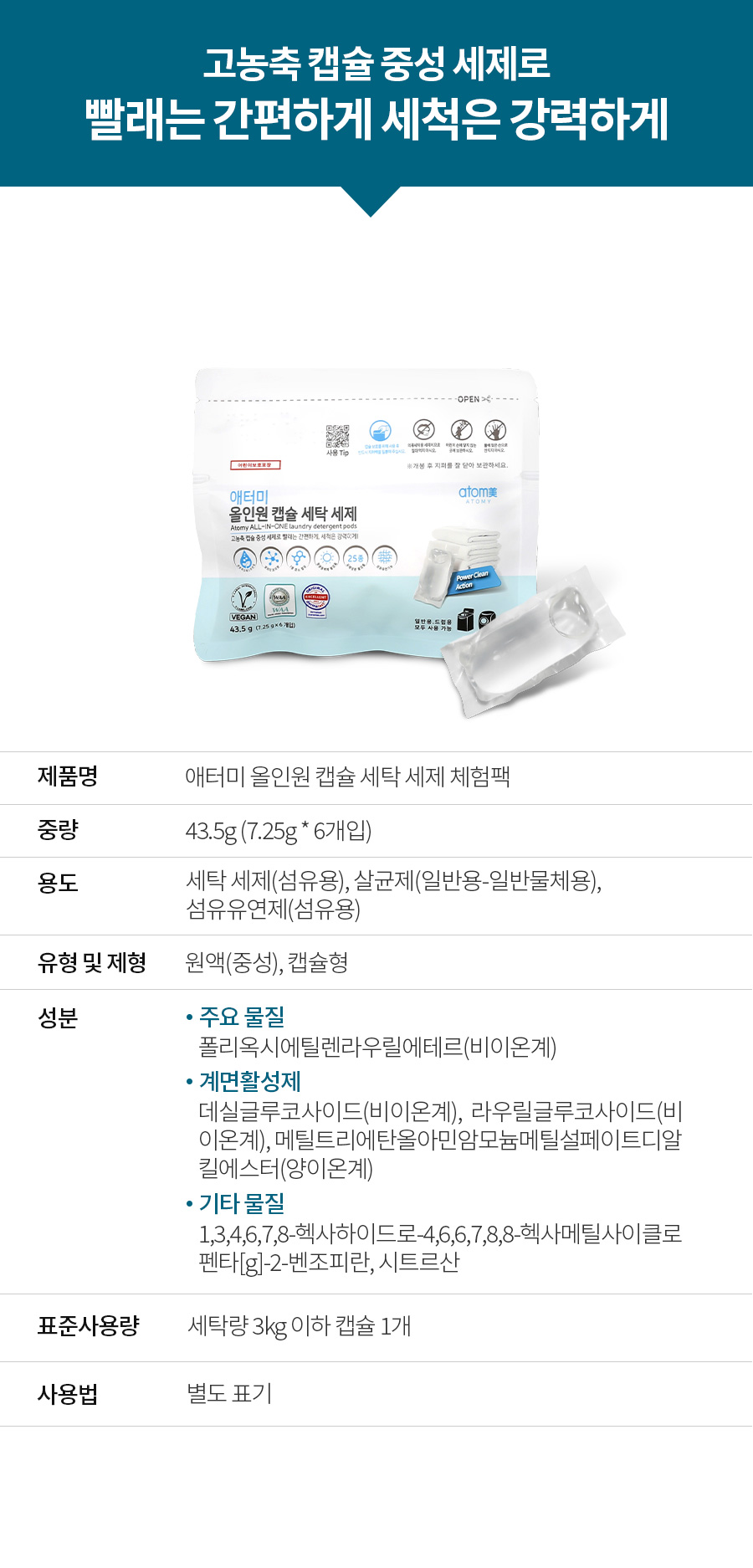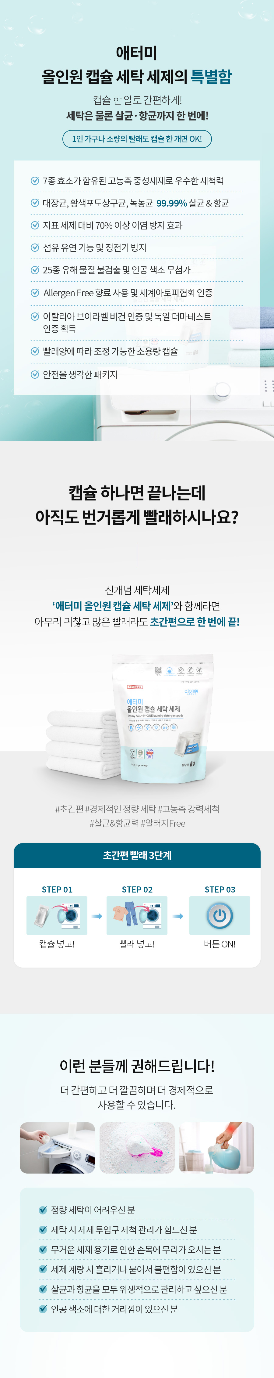 🩸 Nước giặt dạng viên nang tất cả trong một của Atomy là chất hoạt động bề mặt có nguồn gốc tự nhiên, có thể sử dụng an toàn cho cả gia đình, kể cả trẻ sơ sinh. Đây là chất tẩy rửa trung tính đậm đặc chứa 7 loại enzyme và có khả năng làm sạch tuyệt vời, khử trùng và khử trùng 99,99%. tác dụng kháng khuẩn (E. coli, Staphylococcus Aureus, Pseudomonas aeruginosa).