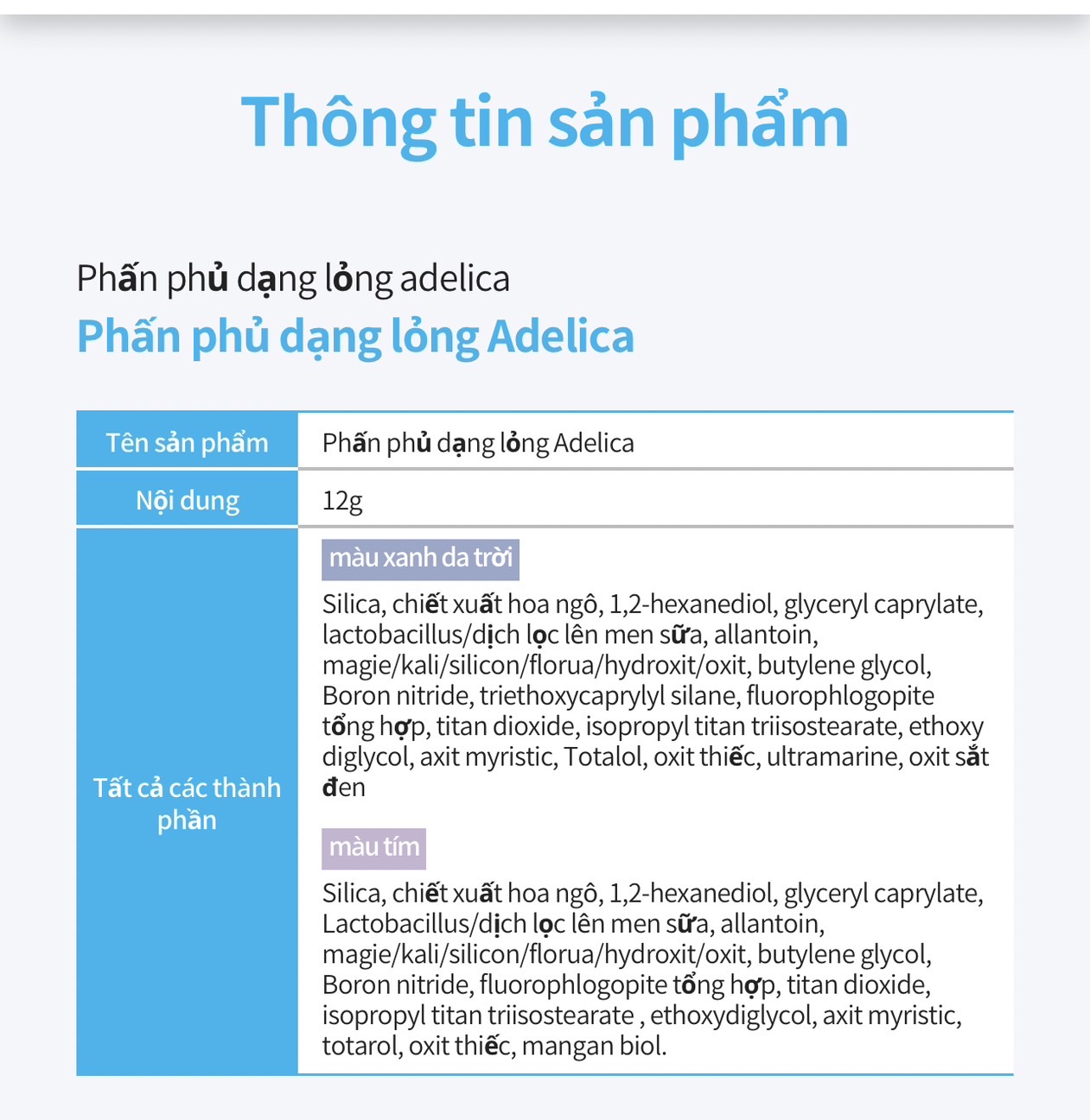 • Phấn silica: thông thoáng da, thấm hút mồ hôi, mang lại cảm giác mềm mịn và lì cho da