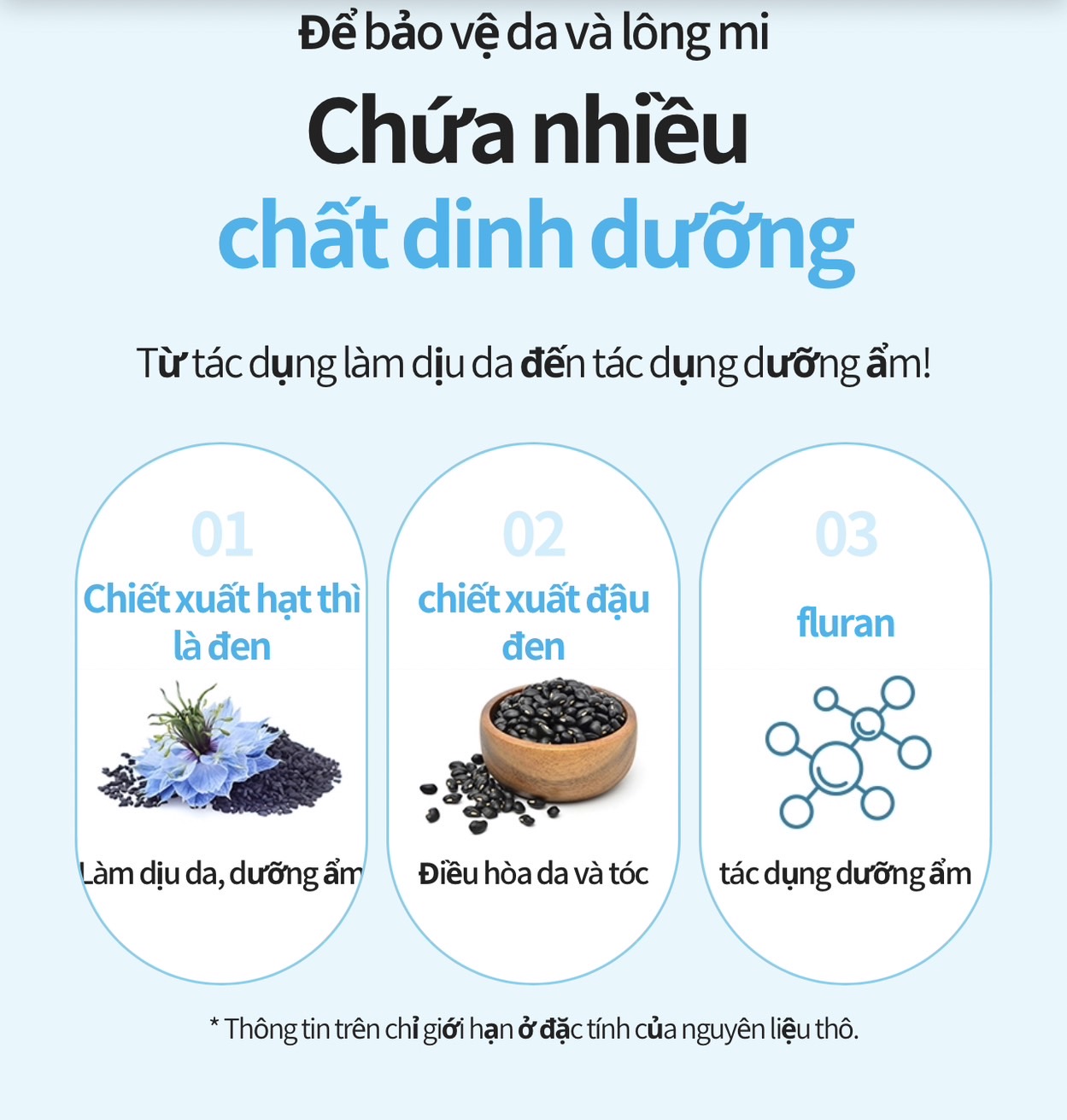 ✅ + Chứa nhiều dưỡng chất giúp bảo vệ vùng quanh mắt và lông mi.