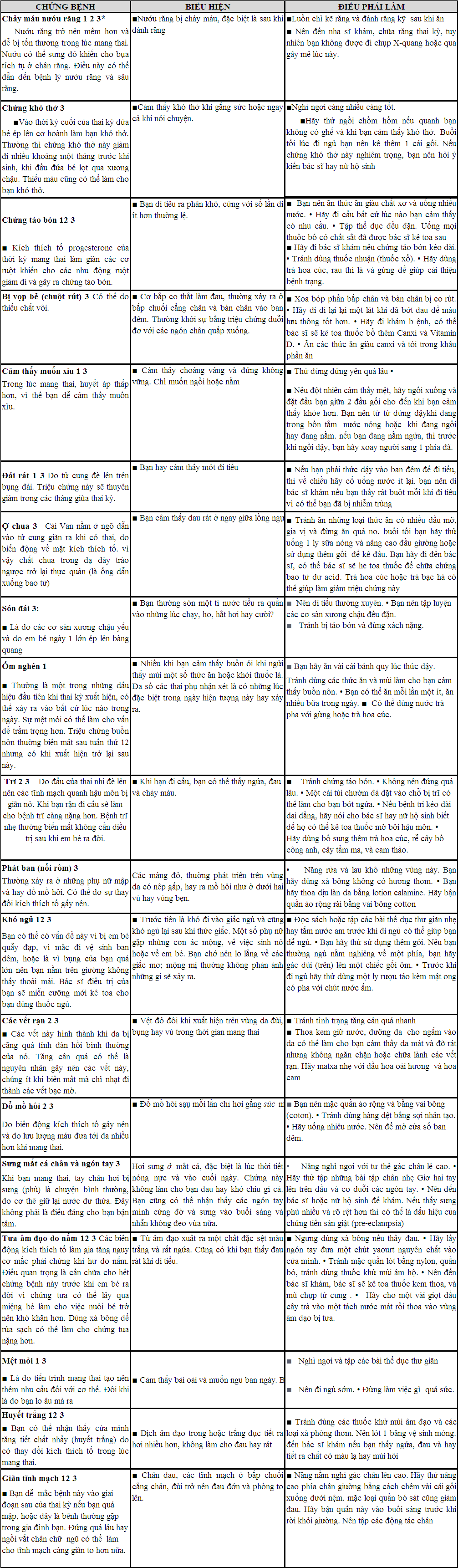 * Các số in đậm nét sau mỗi tên chứng bệnh liên quan đến thứ tự quý thai nghén mà bạn có nhiều xác suất mắc phải. |