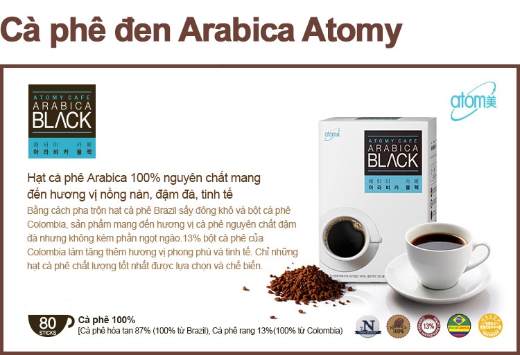Atomy Cafe Arabica Black mini – Café đen gói nhỏ