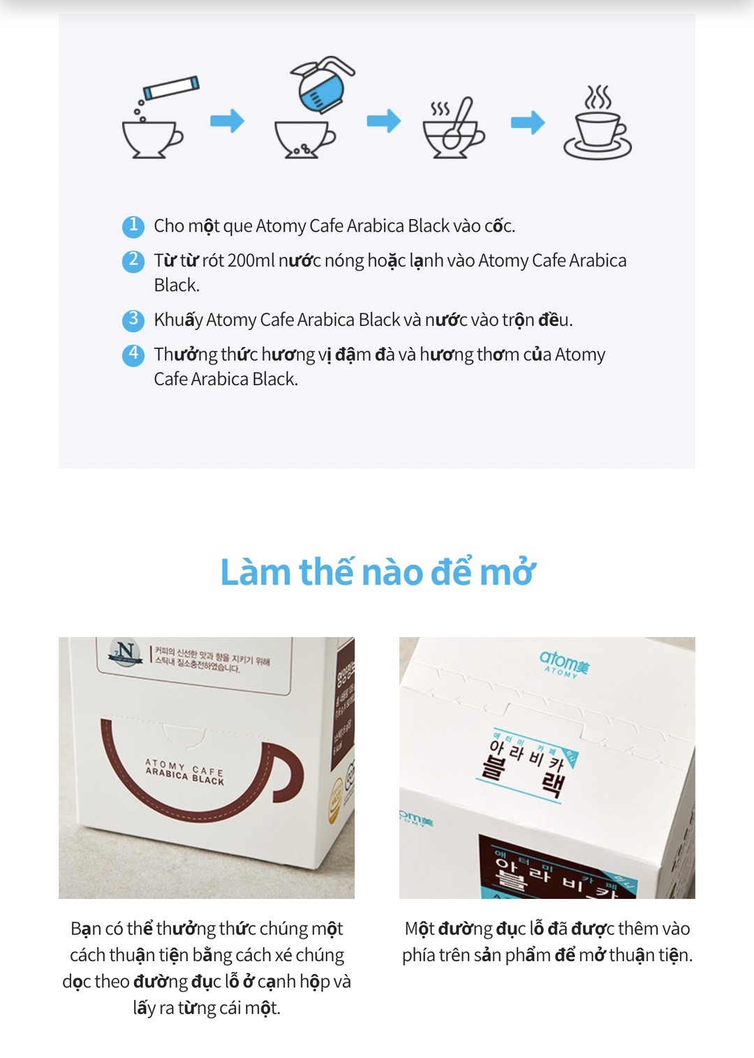 Sử dụng: Cho đường vào café hoặc có thể cho thêm sữa rồi đổ nước nóng vào khuấy đều.