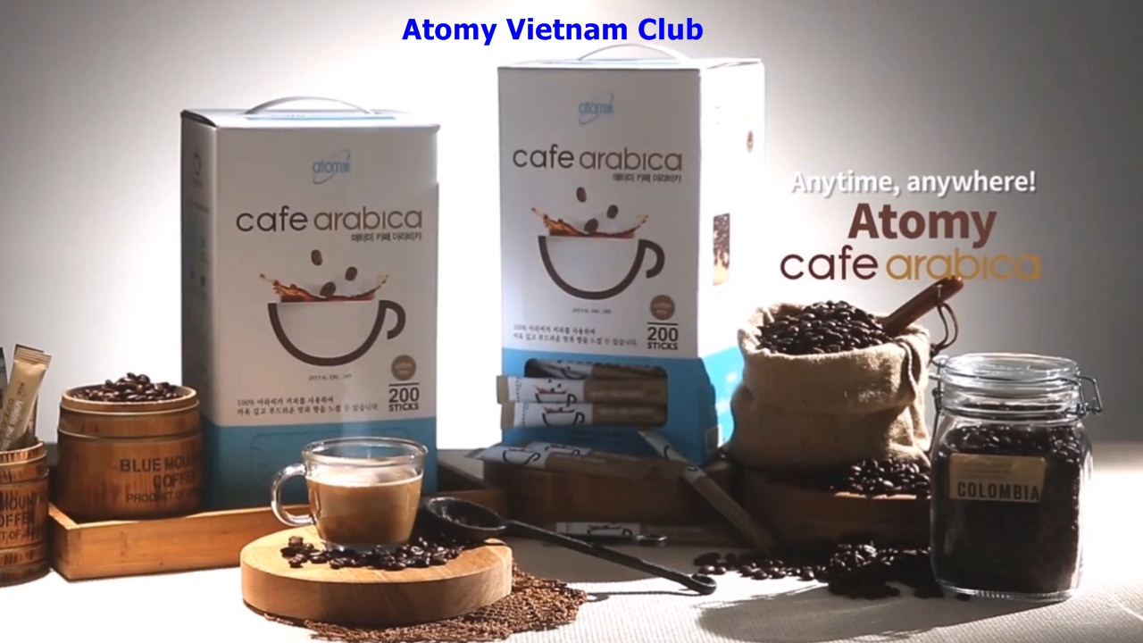 - Cà phê sữa Atomy Cafe Arabica được làm từ 100% hạt café Arabica chất lượng cao trồng tại Brazil kết hợp cùng với sữa bột Casein ( tổng hợp từ sữa bò nguyên chất) tạo hương vị đậm đà và hương café nồng nàng tự nhiên.