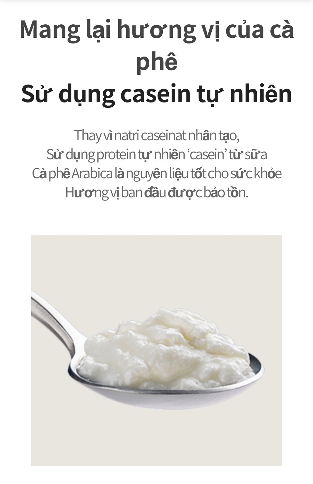 Thành phần: café Arabica chất lượng cao trồng tại Brazil, sữa bột Casein từ bò sữa.