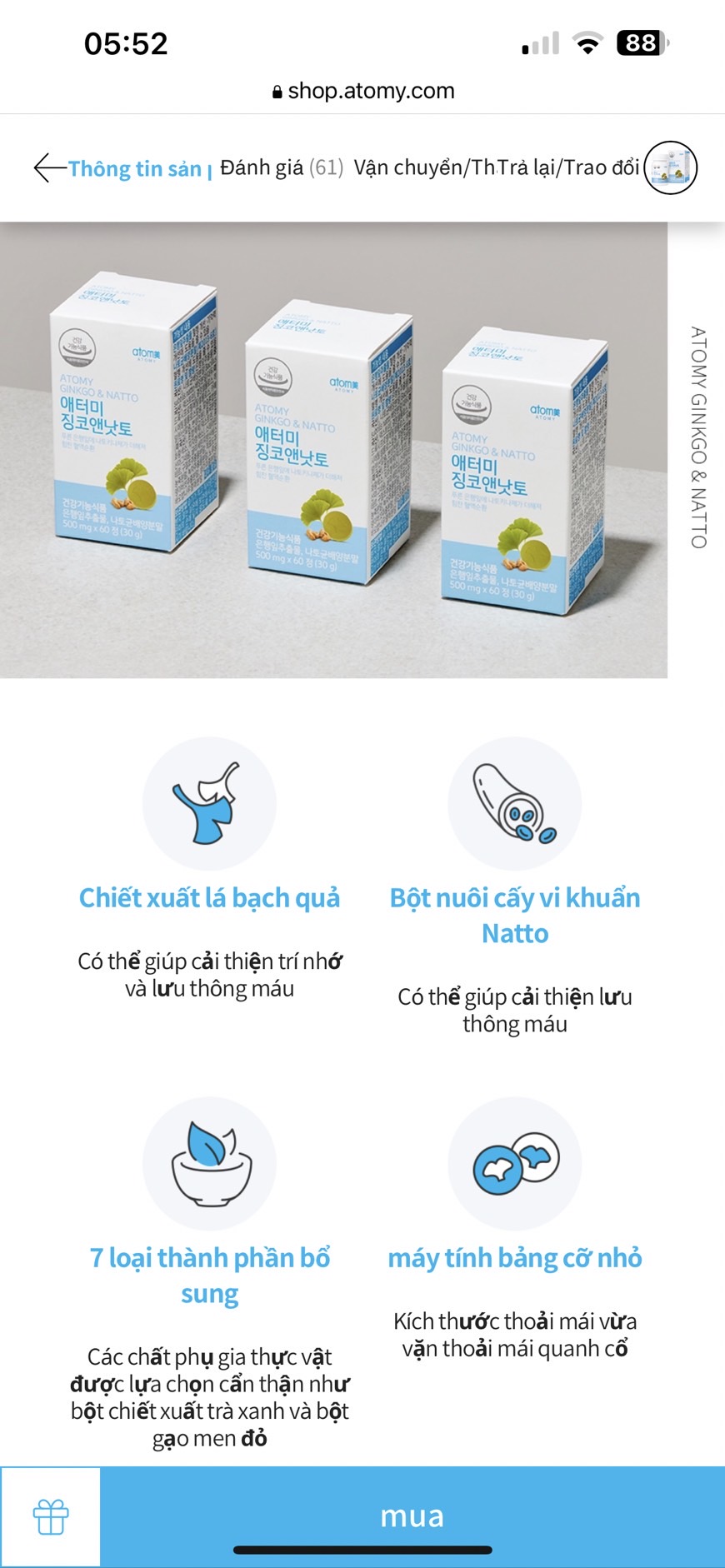 Atomy Ginkgo And Natto - Cải thiện hệ thống tuần hoàn máu