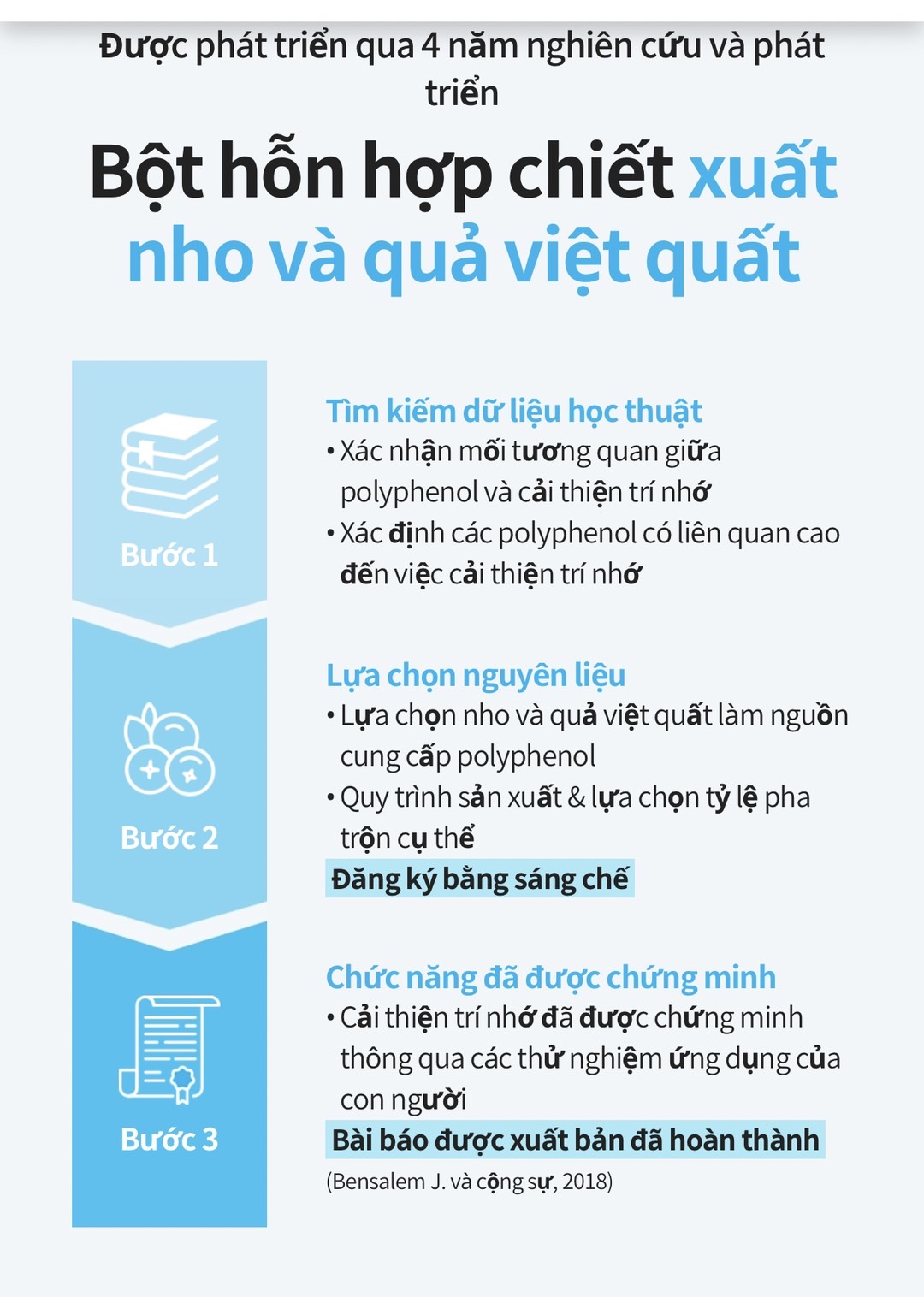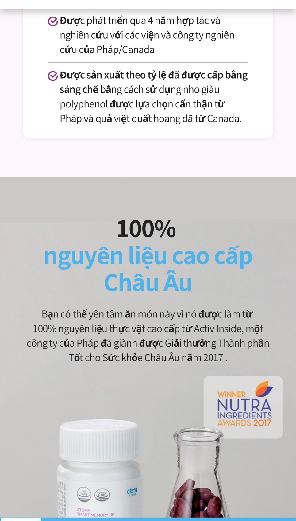 Một sản phẩm được đầu tư, và hợp tác nghiên cứu với công ty tại Pháp và Canada trong 4 năm để cho ra sản phẩm giúp cải thiện trí nhớ