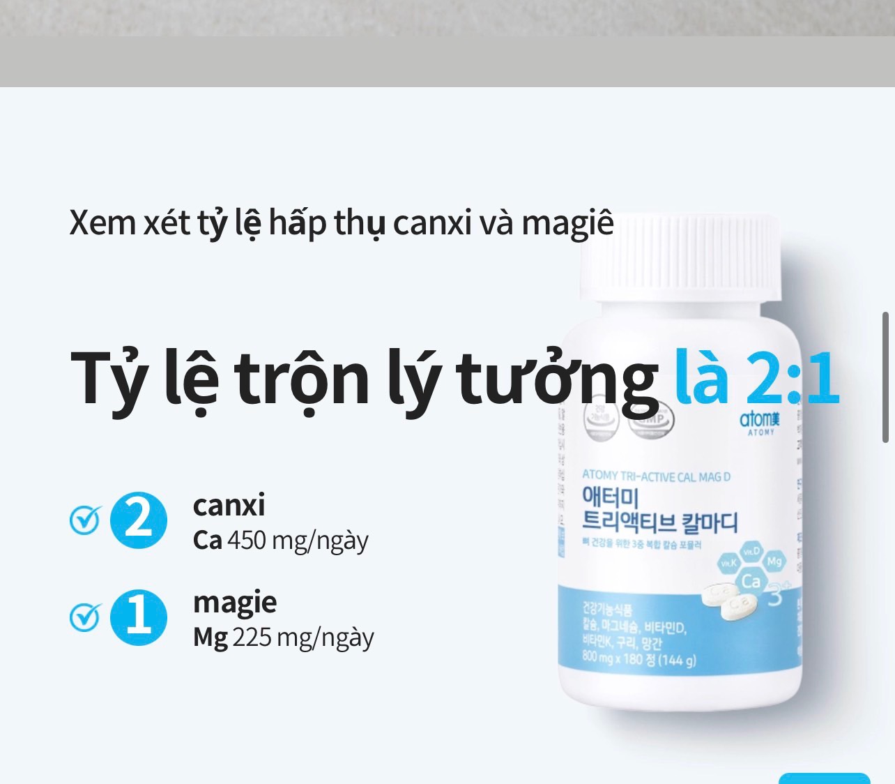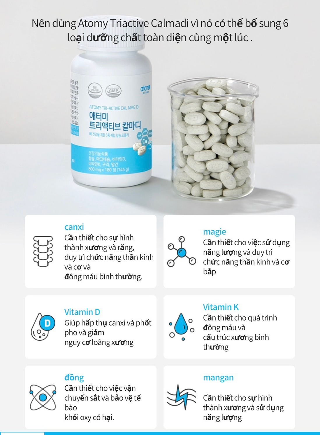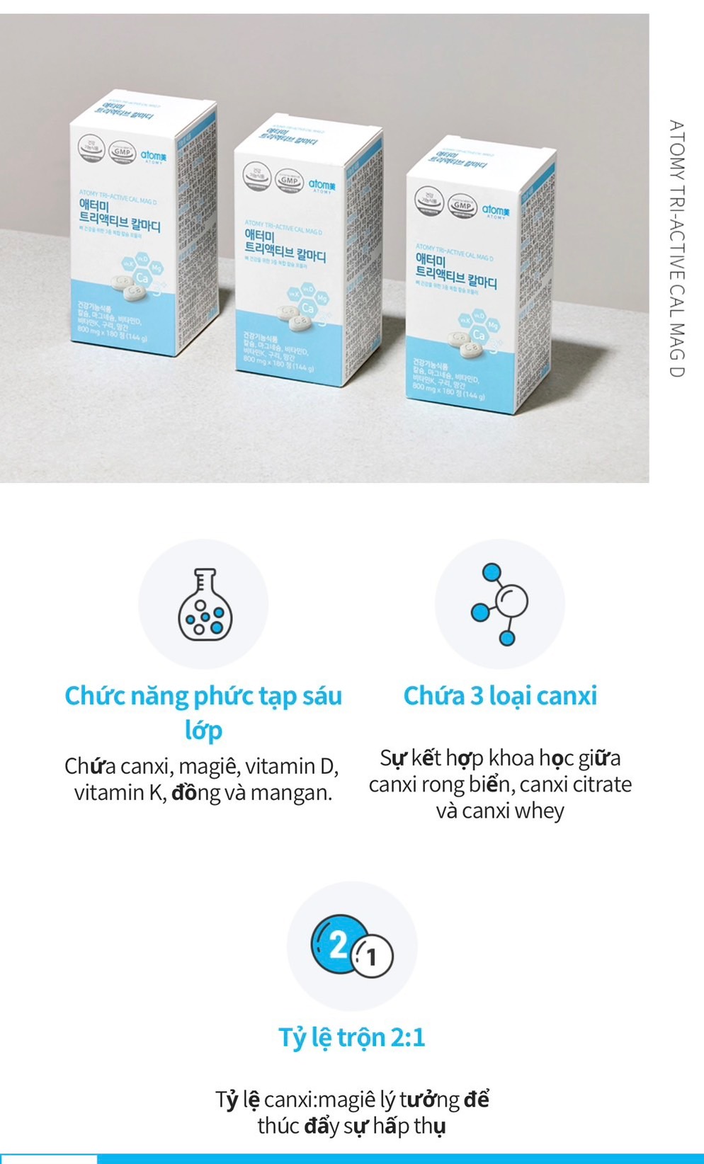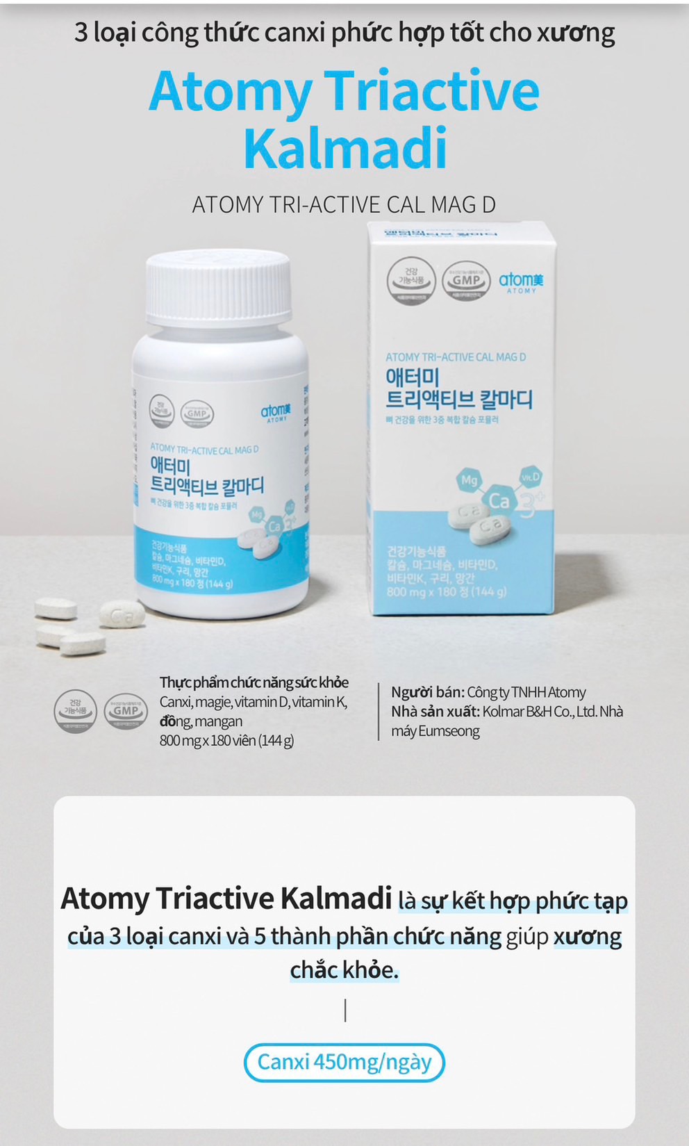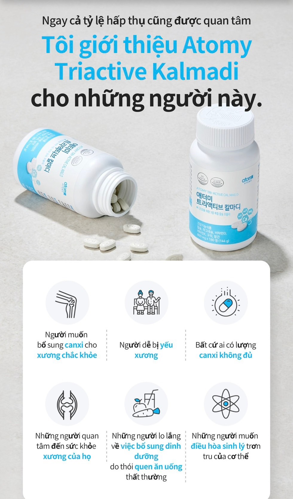 Atomy Tri-active Calcium cực kỳ hiệu quả với liều lượng cao và dễ hấp thu vào cơ thể.