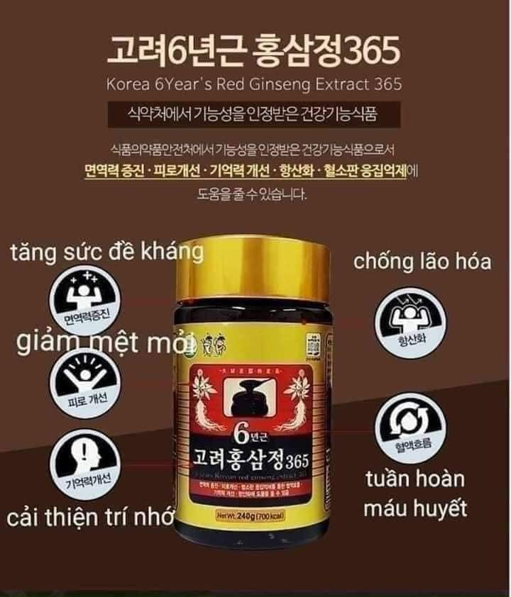 💥 Cao hồng sâm 6 năm tuổi 240g 365 giúp bồi dưỡng nguyên khí và tăng cường sức lực. Tốt cho người có sức khỏe yếu hoặc người mới ốm dậy.
