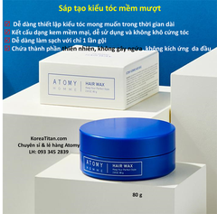 Sáp vuốt tóc nam Atomy lọ 80g kể cả những người mới bắt đầu sử dụng cũng có thể dễ dàng kiểm soát được theo ý muốn của mình!