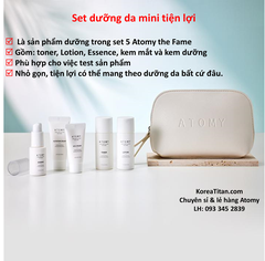 Set 5 sản phẩm dưỡng da nổi tiếng Atomy The Fame dạng mini nhỏ gọn, thanh lịch giúp dưỡng da mọi nơi khi đi du lịch, công tác xa: Toner, Lotion, Essence, Eye Cream, Nutrition Cream - Travel Skin Care Kit - 애터미 더페임 스킨케어 여행용 키트 - Атоми Фэйм Дорожный набор