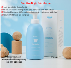 Dầu tắm gội dịu nhẹ và an toàn cho bé sơ sinh, cấp ẩm và duy trì độ pH cho da giúp làm dịu da, ngăn ngừa sưng ngứa, rôm sãy cho bé 350ml- Atomy Cerabebe Shampoo & Body Wash - 애터미 세라베베 샴푸 앤 바디워시 - Шампунь и гель для душа Atomy Cerabebe