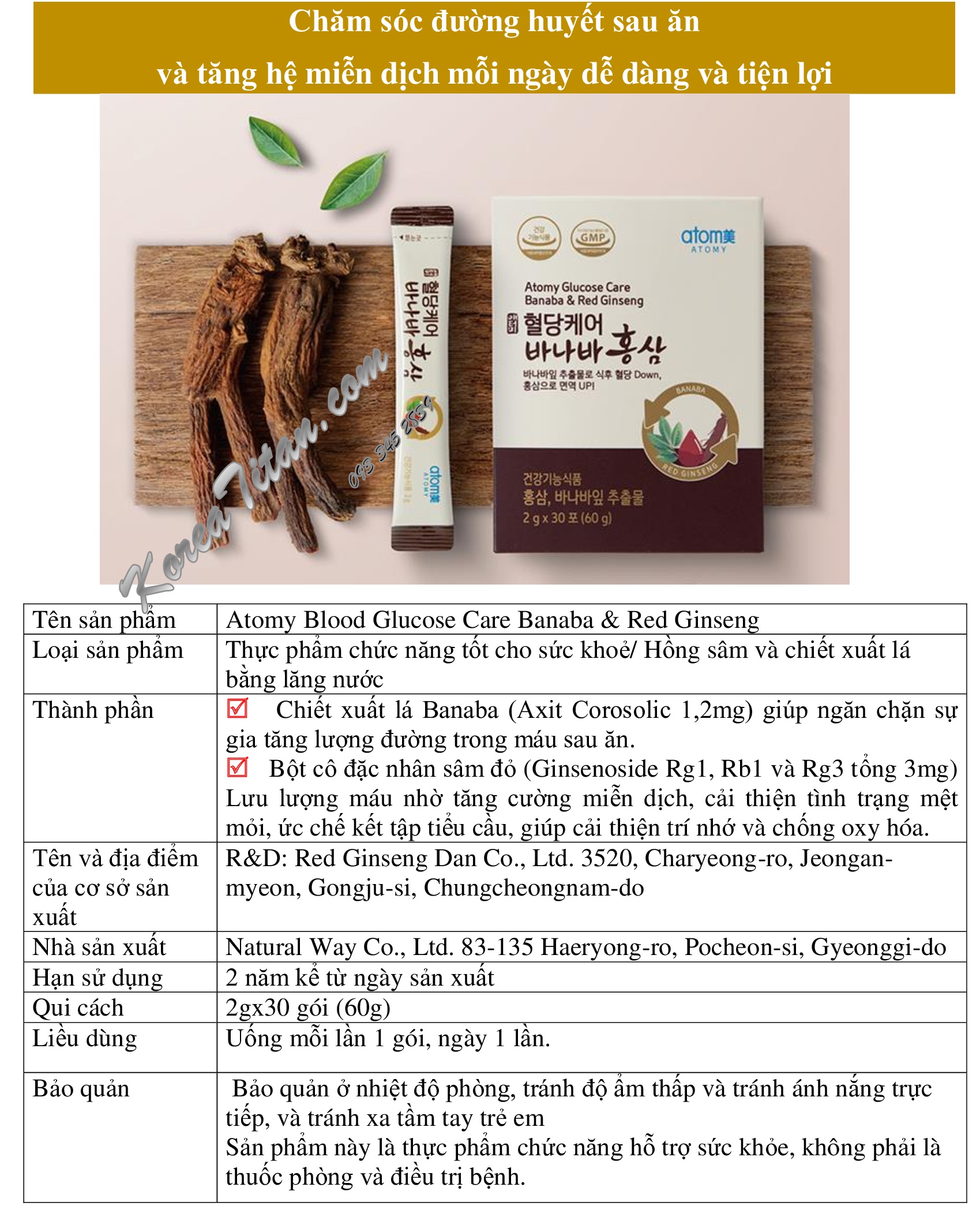 SẢN PHẨM Quản lý đường huyết Atomy Glucose Care Banaba & Red Ginseng