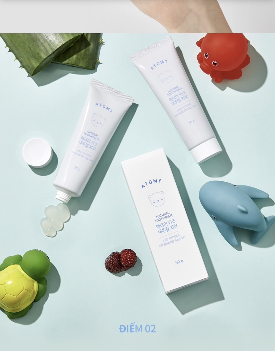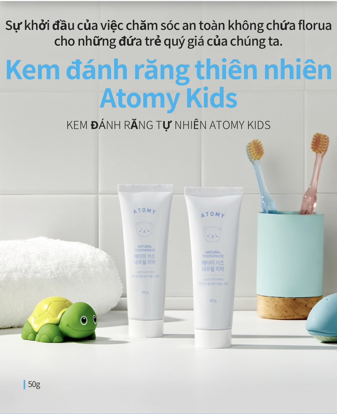 Kem đánh răng chiết xuất thiên nhiên không chứa Florua an toàn dành cho trẻ em ( 50g) - Atomy Kid Natural Toothpaste (Non fluoride) - 애터미 키즈 내추럴 치약 - Натуральная детская зубная паста Atomy