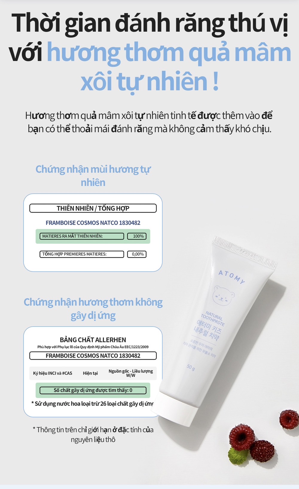 Hương quả mân xôi tự nhiên 👉 Sản phẩm có thêm mùi hương của quả Mâm xôi làm cho trẻ có cảm giác thích thú khi dùng.