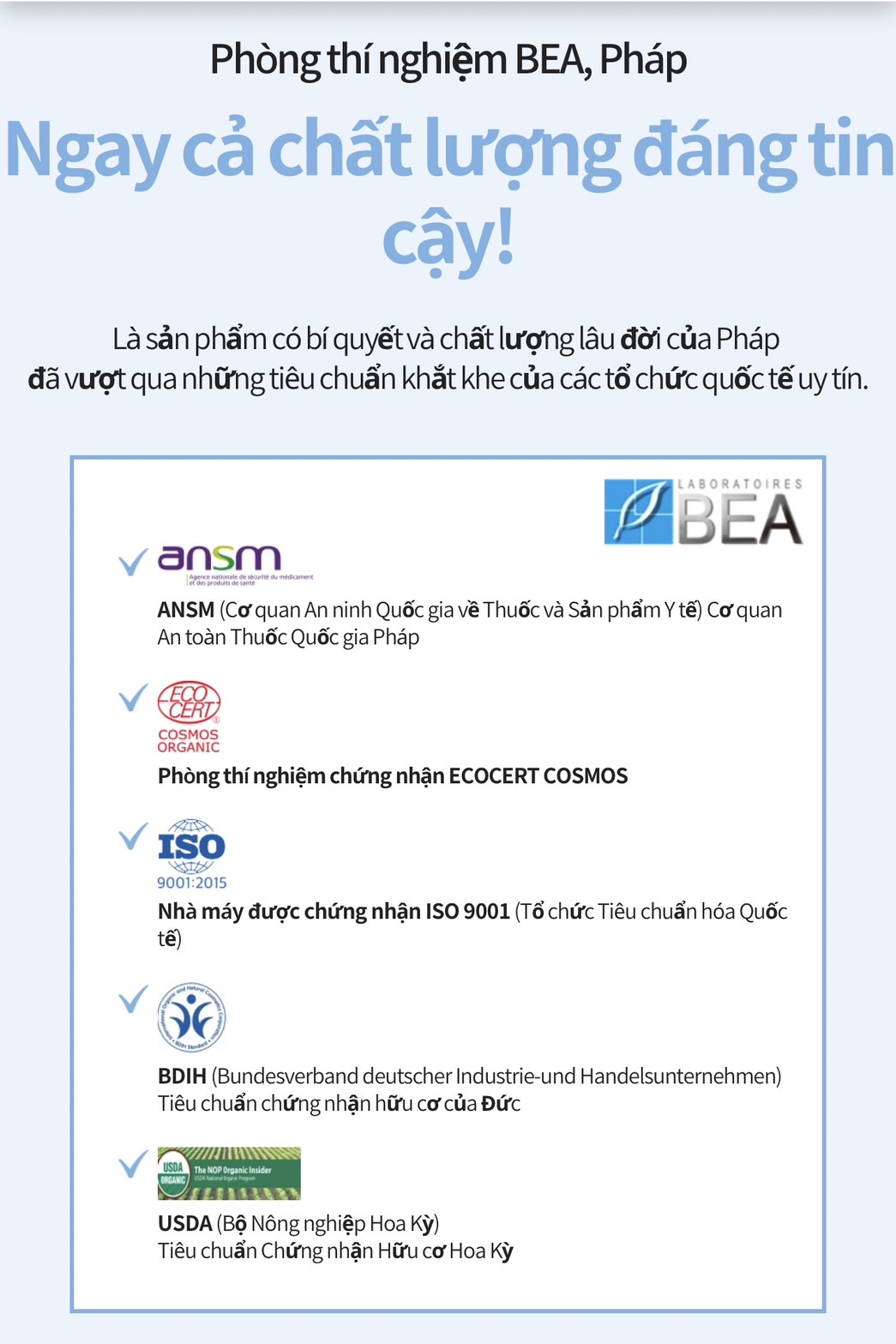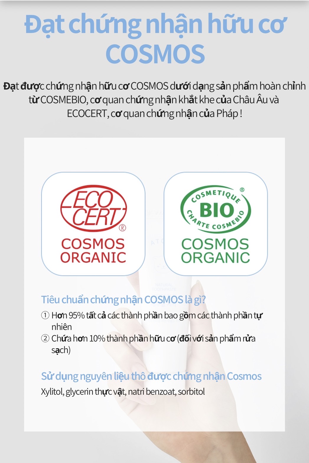 1️⃣ Sản phẩm đạt chứng nhận chức năng hữu cơ Cosmos dưới dạng thành phâm.