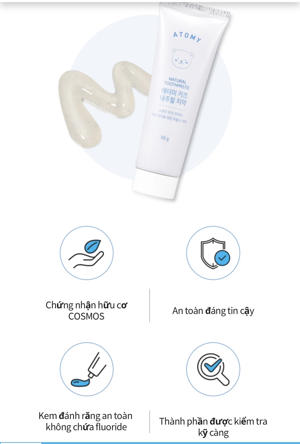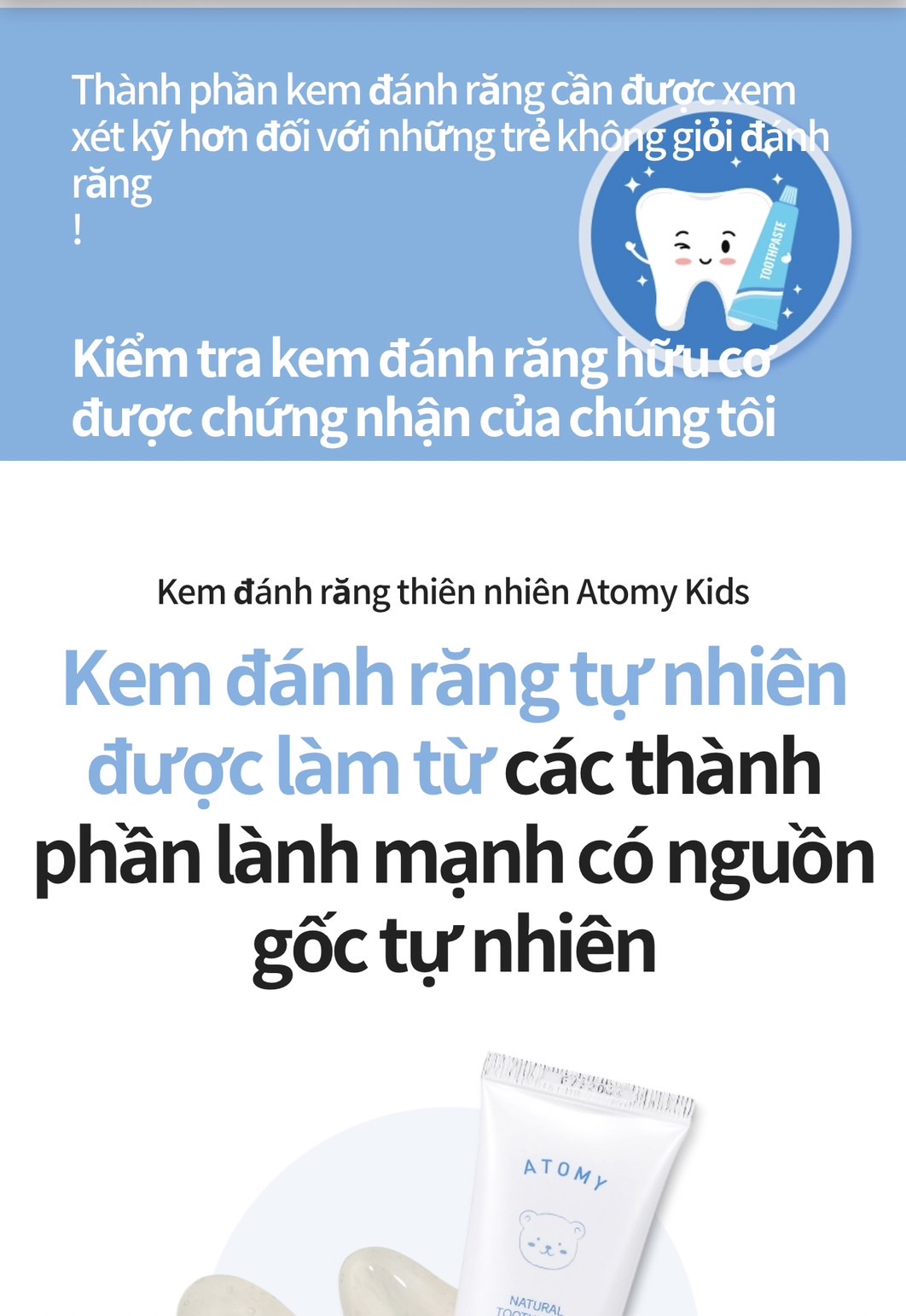 Kem đánh răng dành cho trẻ em Atomy Kids Natural Toothpaste 애터미 키즈 내추럴 치약
