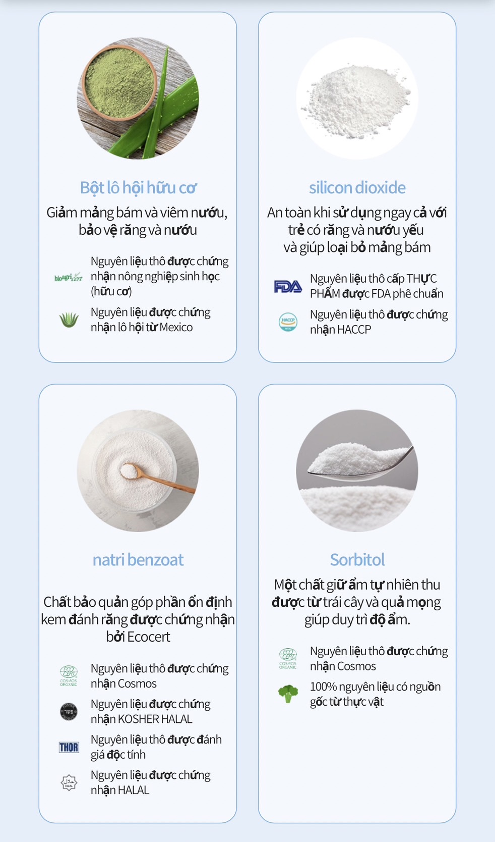 🔵 Bột Nha Đam hữu cơ: giàu vitamin & khoán chất 👉 Giúp loại bỏ mảng bám & viêm nướu bảo vệ răng và nướu cho trẻ.