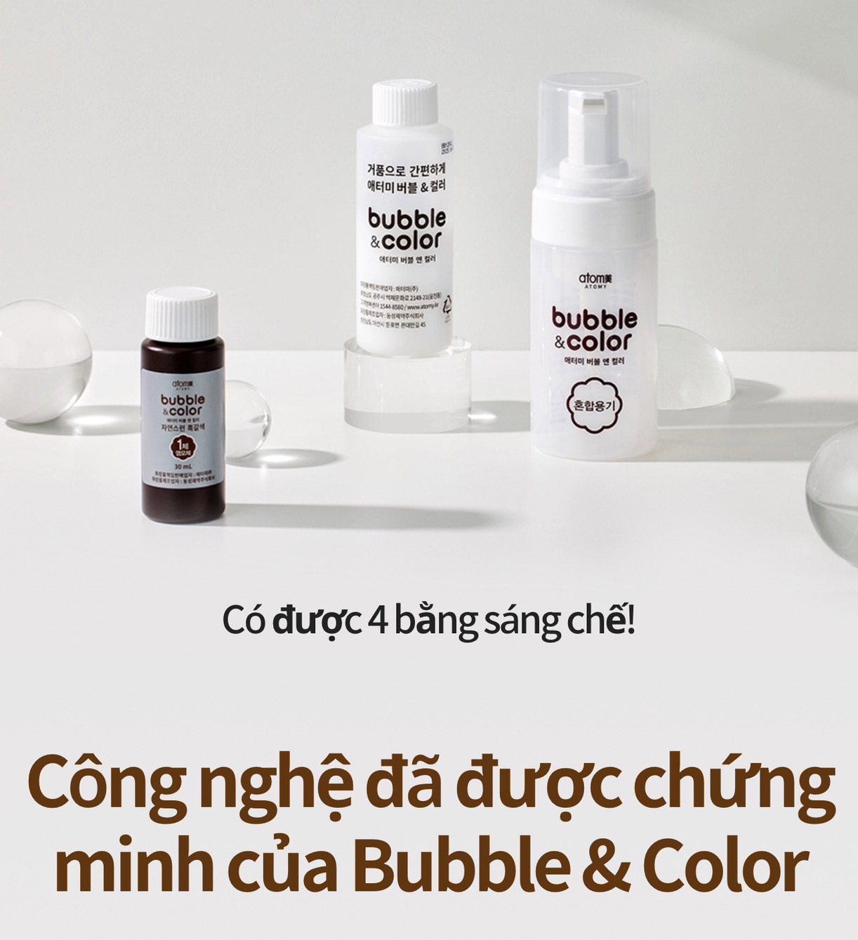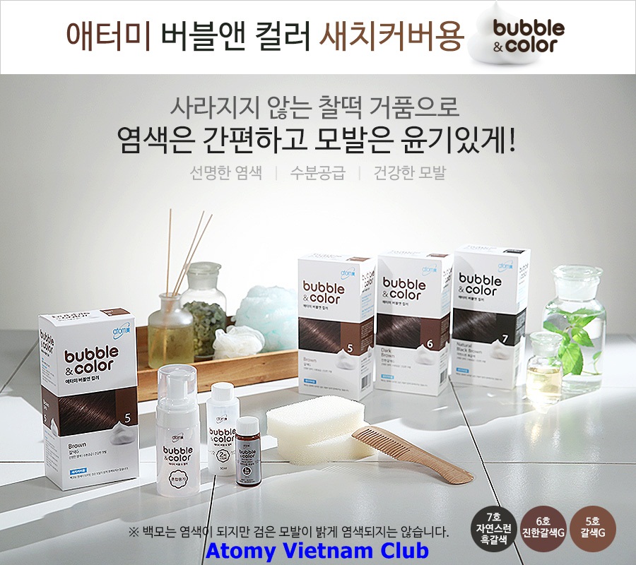 - Dầu gội nhuộm tóc Atomy Bubble & Color giữ màu lâu, có thể phản chiếu tia tử ngoại của ánh nắng mặt trời gây hư tổn cho tóc.