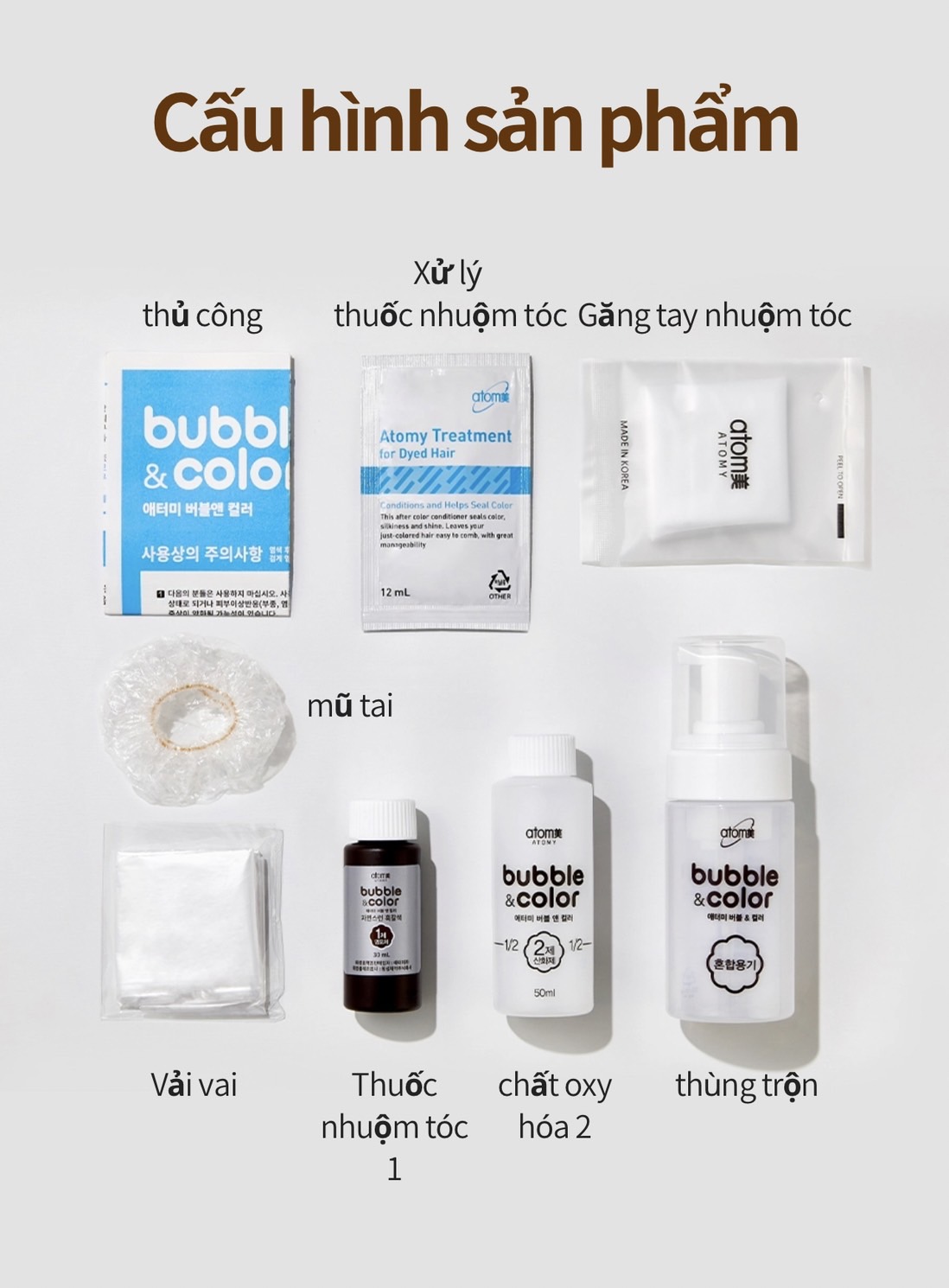 Atomy Bubble & Color 6 - Dầu gội nhuộm tóc màu nâu đậm