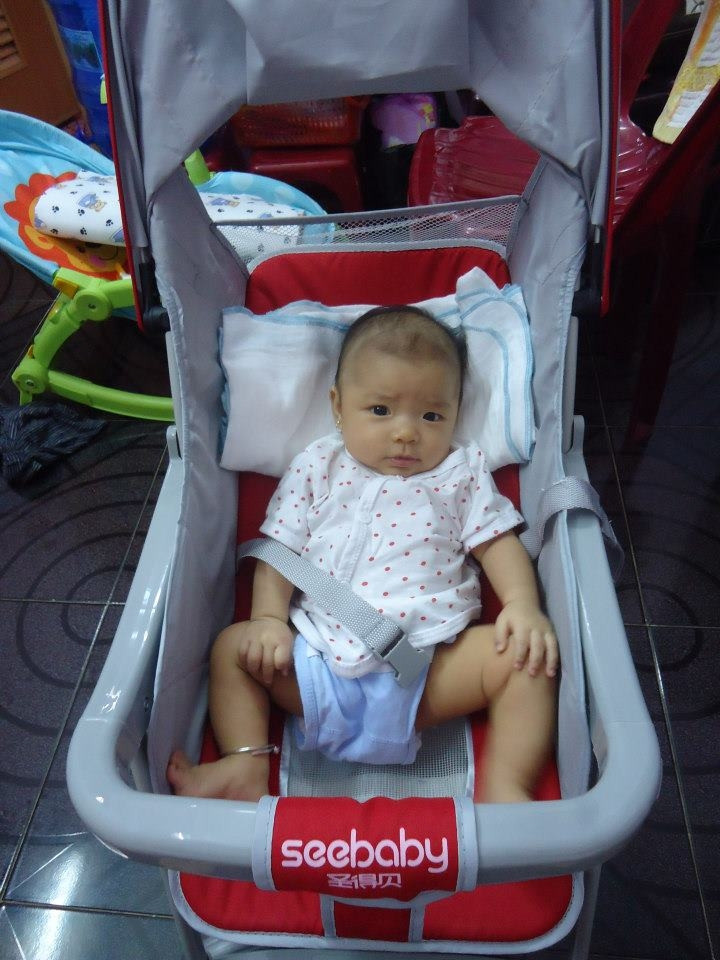 Trong xe nôi hãy gắn và luôn luôn sử dụng một bộ yên cương khi em bé bắt đầu biết ngồi.