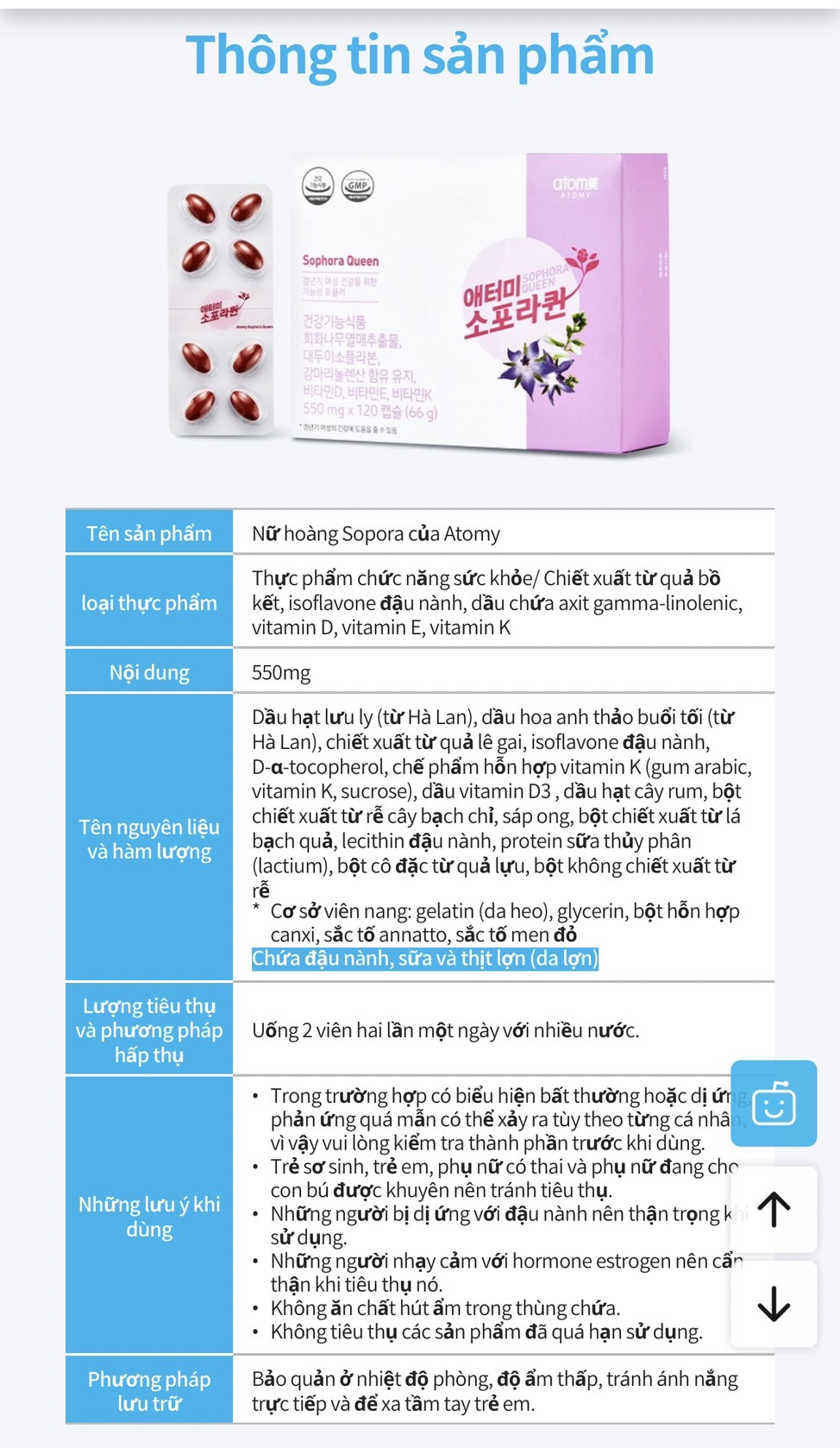 Atomy Sophora Queen - Hỗ trợ sức khoẻ phụ nữ tiền mãn kinh