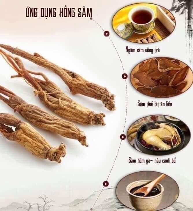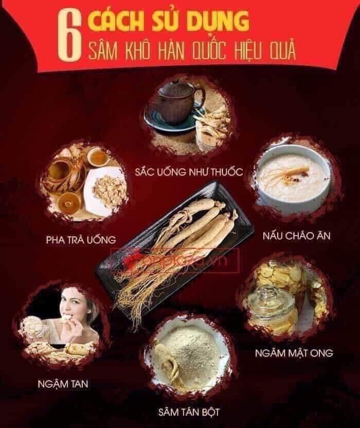 👉Sâm khô có thể ngâm rượu . Thái lát ngậm trực tiếp . Thái lát hãm trà uống . Thái lát ngâm mật ong . Thái lát hầm gà.