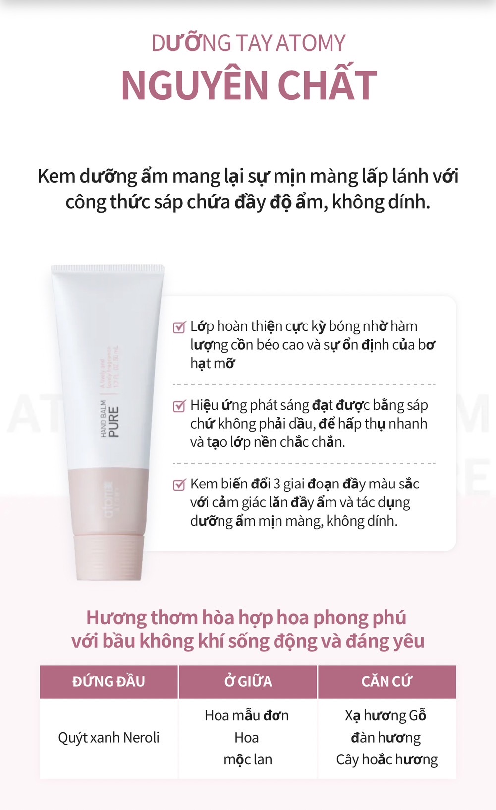 𝗞𝗲𝗺 𝗱𝘂̛𝗼̛̃𝗻𝗴 𝗱𝗮 𝘁𝗮𝘆 Hương thơm quyến rũ dài lâu 50ml (màu hồng) - Atomy Hand Balm - 애터미 핸드밤 - Атоми Бальзам для рук Свежесть
