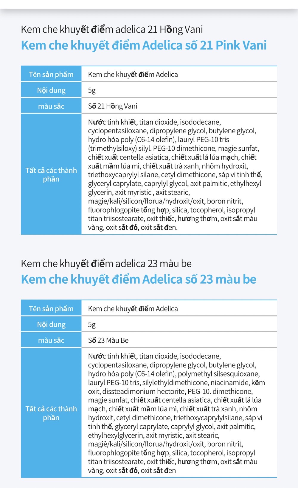 ✔️ Hai màu: số 21 Pink Vanilla & số 23 Beige 👉 5gam/ cây