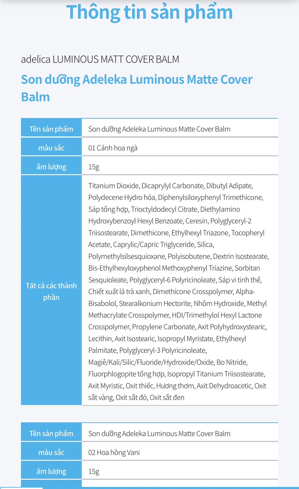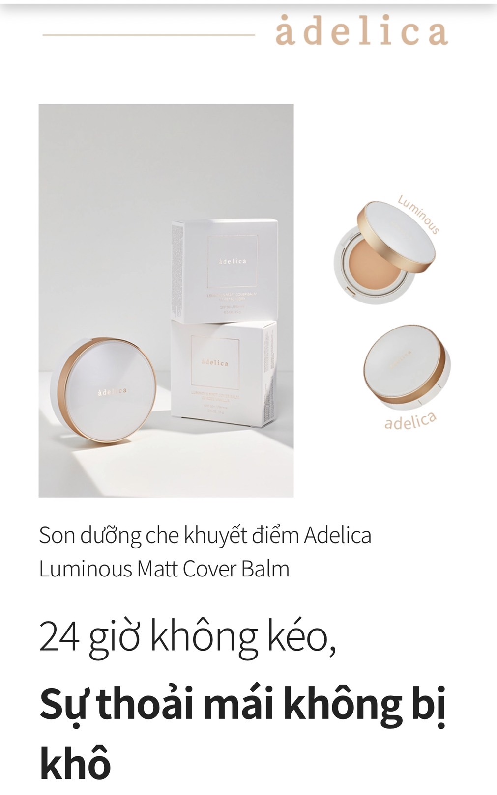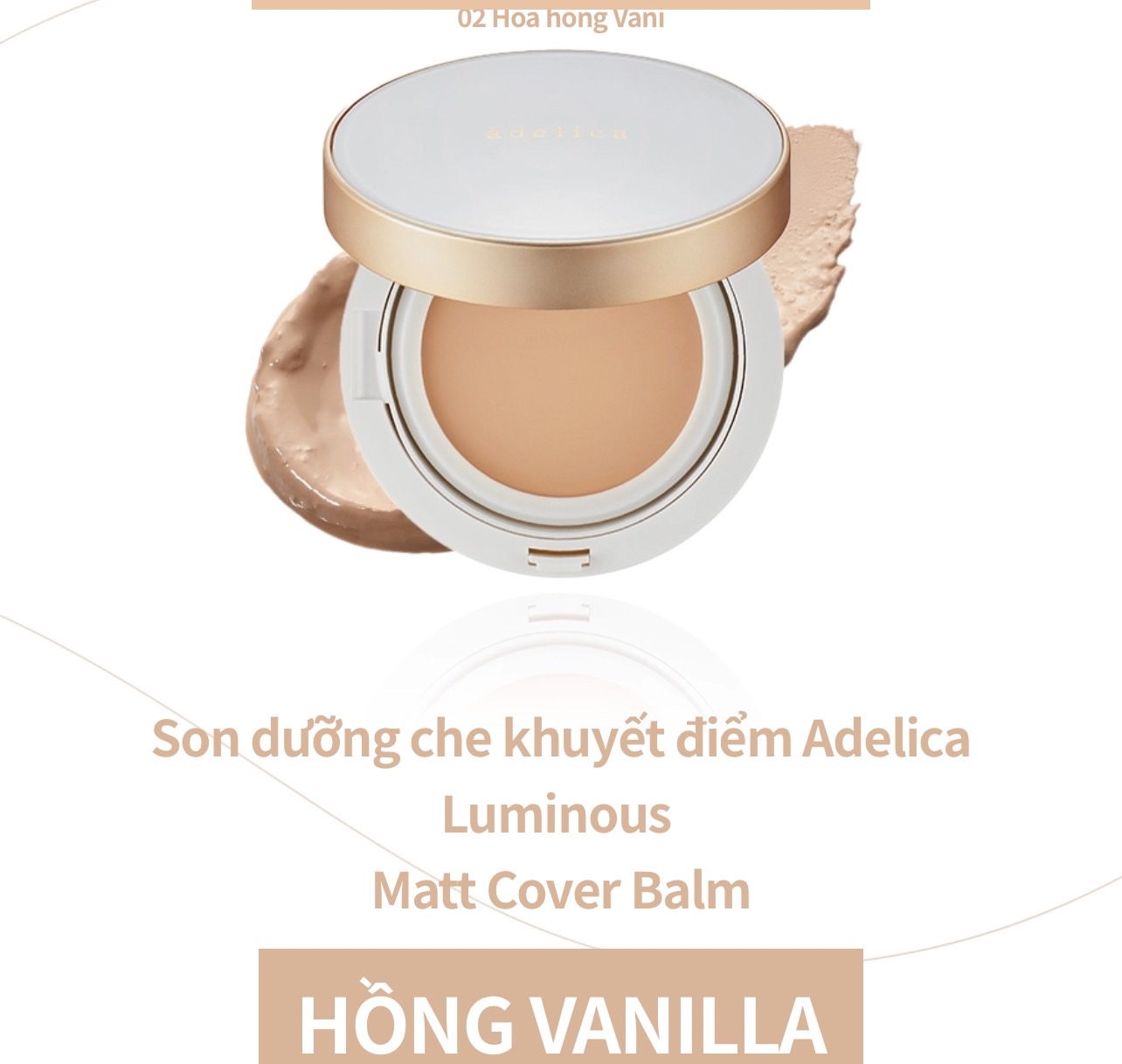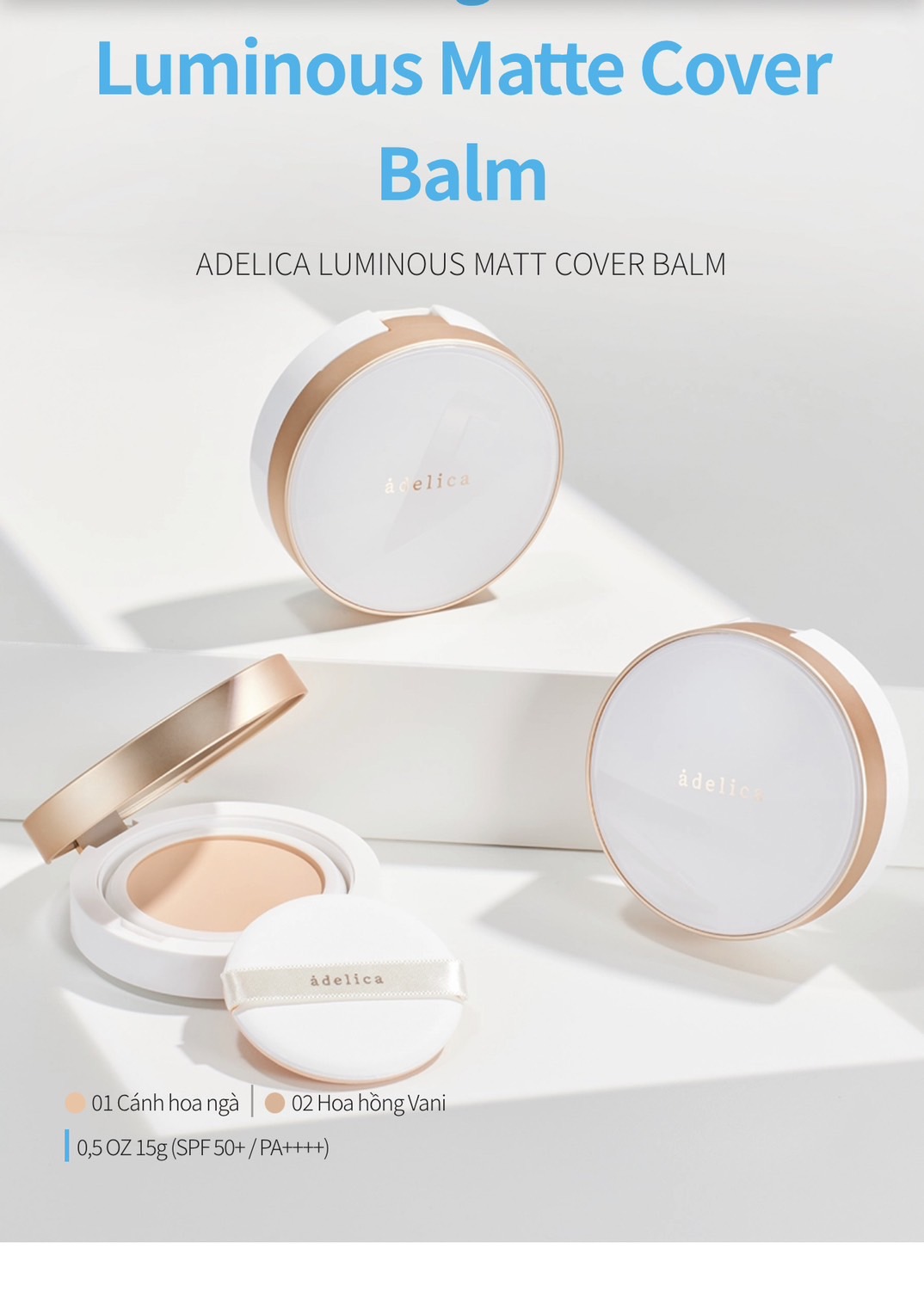 Kem che khuyết điểm Adelica Luminous Matt Cover BALM SPF50+ /PA ++++ độ bám dính cao, nhẹ nhàng suốt cả ngày, với độ che phủ tuyệt vời và thời gian lưu lại lâu dài, phù hợp với các loại da khác nhau –