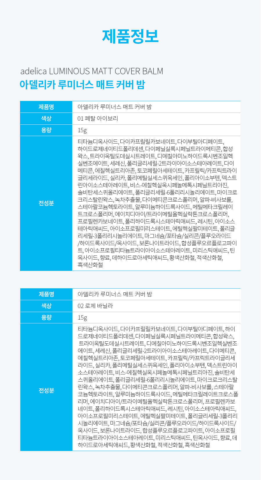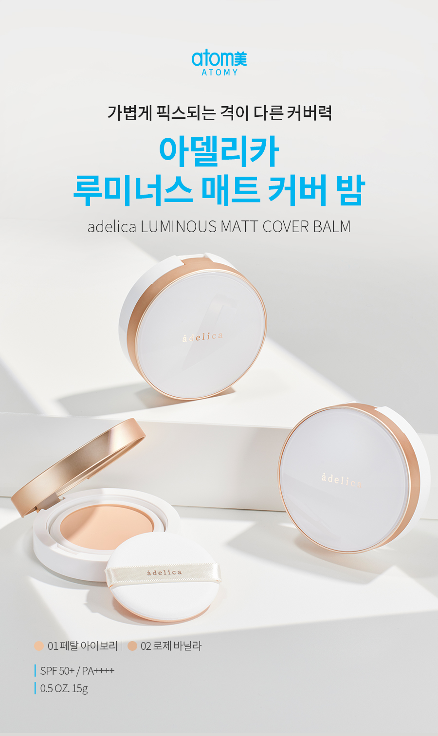Kem che khuyết điểm Adelica Luminous Matt Cover BALM SPF50+ /PA ++++ độ bám dính cao, nhẹ nhàng suốt cả ngày, với độ che phủ tuyệt vời và thời gian lưu lại lâu dài, phù hợp với các loại da khác nhau –