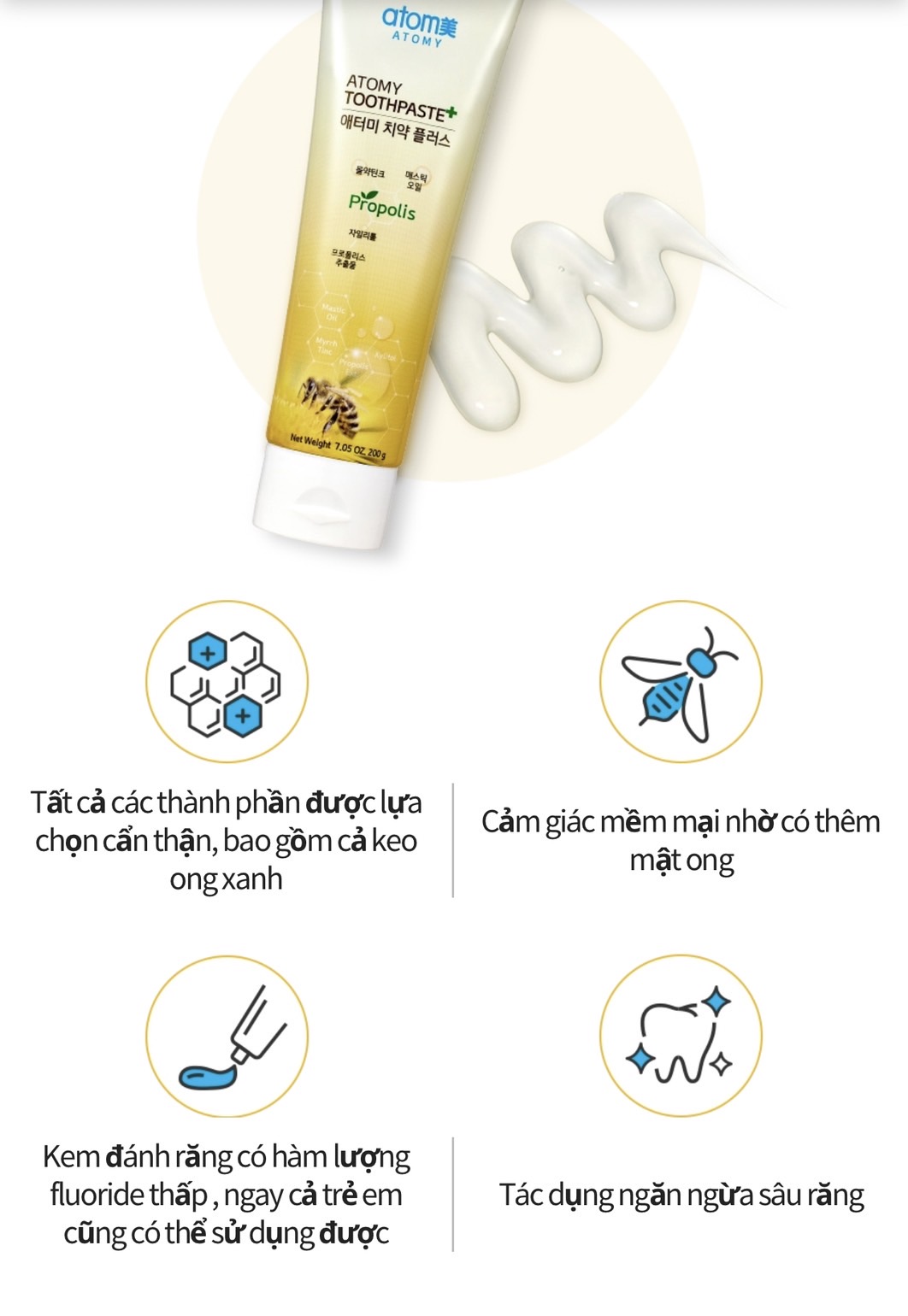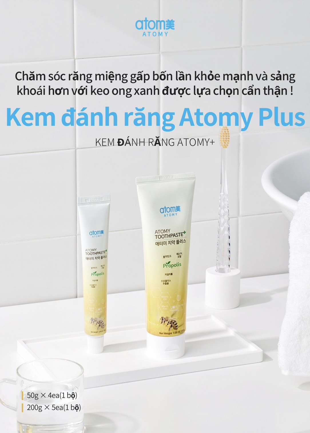 Kem đánh răng sạch khuẩn và ngừa sâu răng vượt trội chiết xuất từ keo ong (50g x 4 tuýp) - Atomy Toothpaste 50g - 애터미 치약 플러스 50g - Атоми Зубная Паста Набор 4 шт