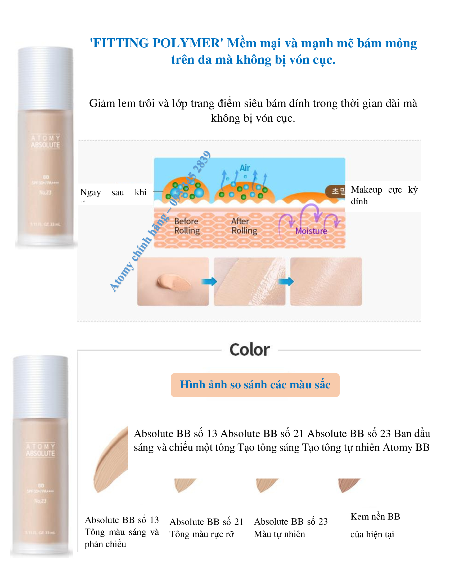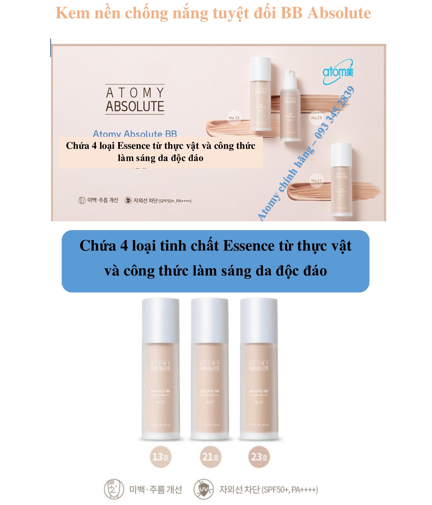 Atomy Absolute BB là loại kem nền trang điểm hội tụ đầy đủ các ưu điểm cho 1 lớp nền mỏng, nhẹ, không bí da, mịn màng, mượt mà, kiềm dầu, che khuyết điểm tốtvà chống nắng tuyệt đối của Atomy