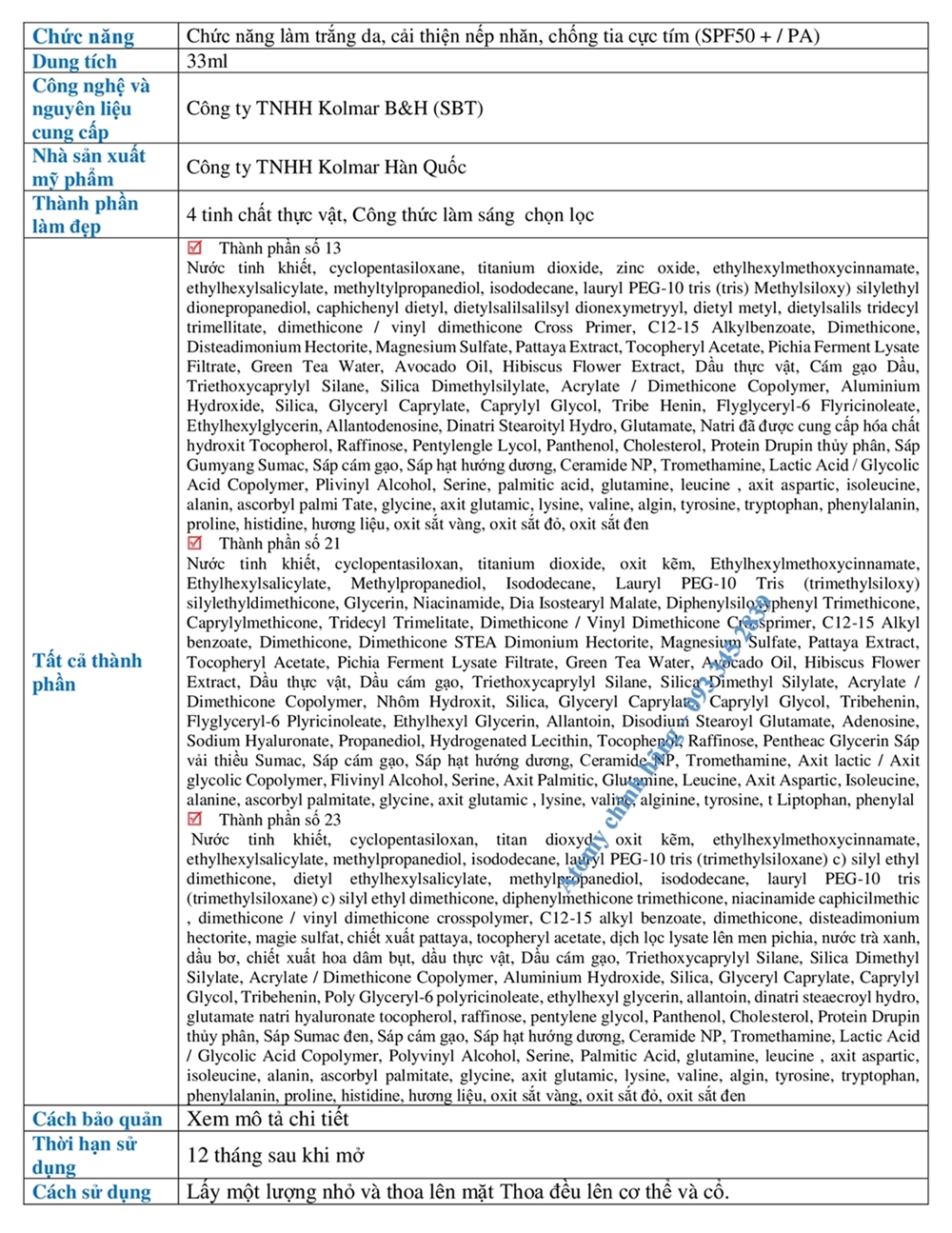 Với các thành phần dưỡng da tự nhiên từ dầu cám gạo, dầu hoa hạt hướng dương, cây Sơn ta… giúp da vẫn thoáng mát cả ngày.