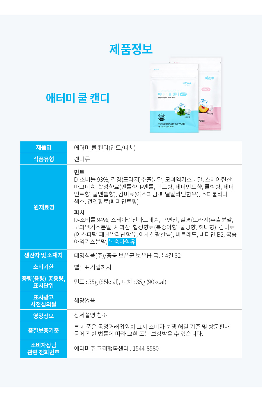 Atomy Low Sugar Mints (Mint Flavor 🌿 / Peach Flavor 🍑)