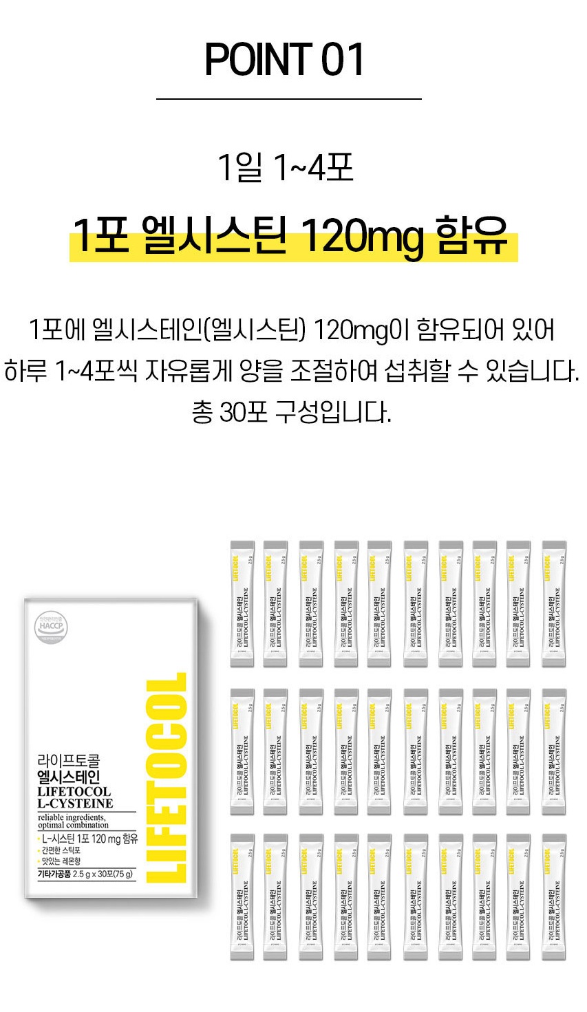 👉 Quy cách: Mỗi hộp 30 gói, chứa 120 mg L-cysteine mỗi gói.