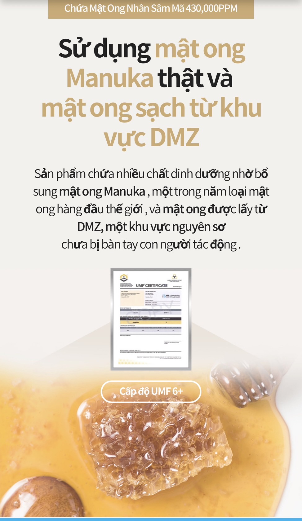 ✅ Cung cấp dưỡng chất của mật ong manuka và sử dụng top 0,5% cao nhất của hồng sâm