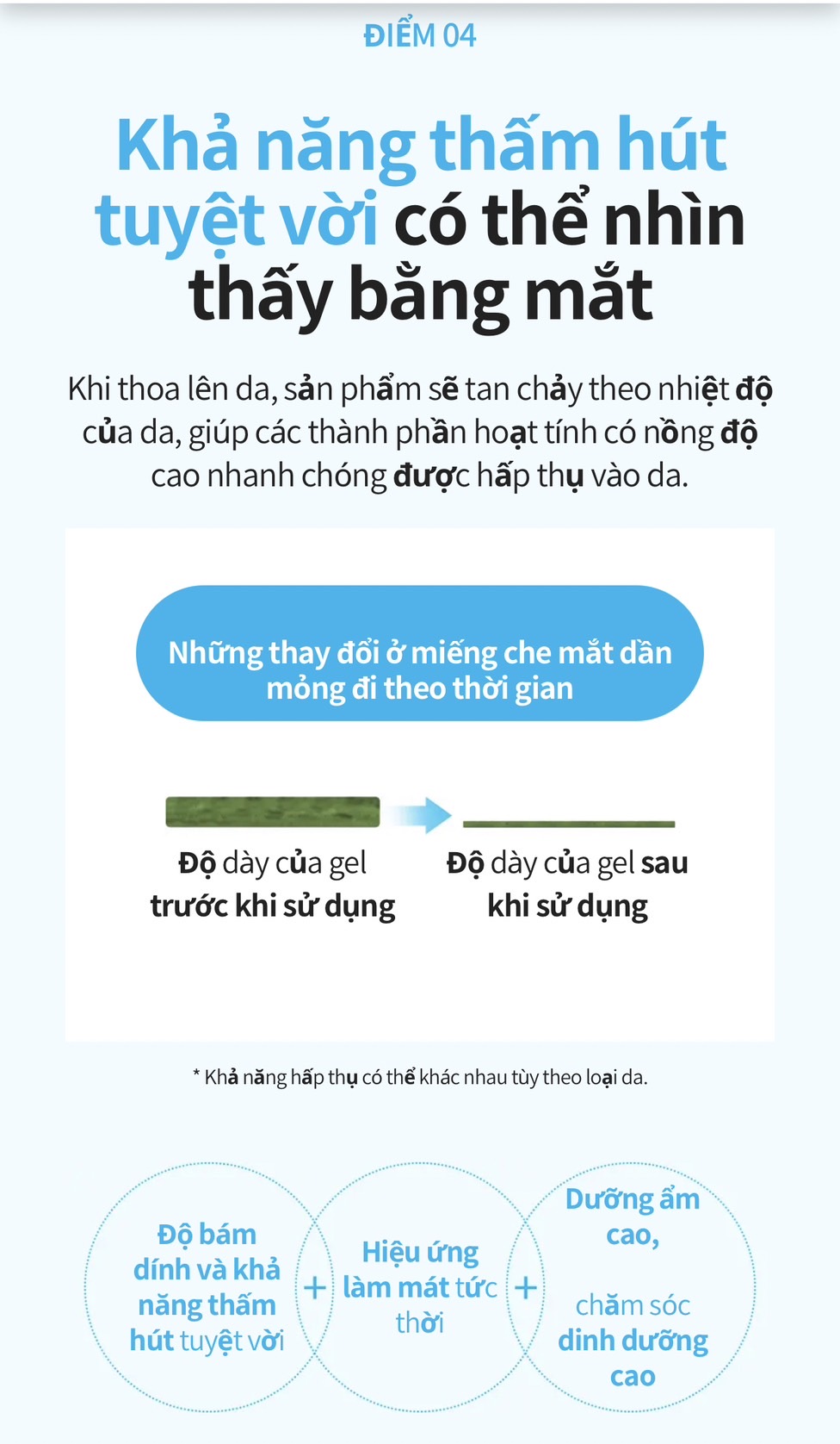 ✅ Làm trắng và cải thiện nếp nhăn (Chức năng kép Khi gel tan chảy theo nhiệt độ da, nó cung cấp độ ẩm và dinh dưỡng dồi dào như collagen biển và các thành phần hoạt tính để làm cho vùng da quanh mắt tươi sáng và đàn hồi.