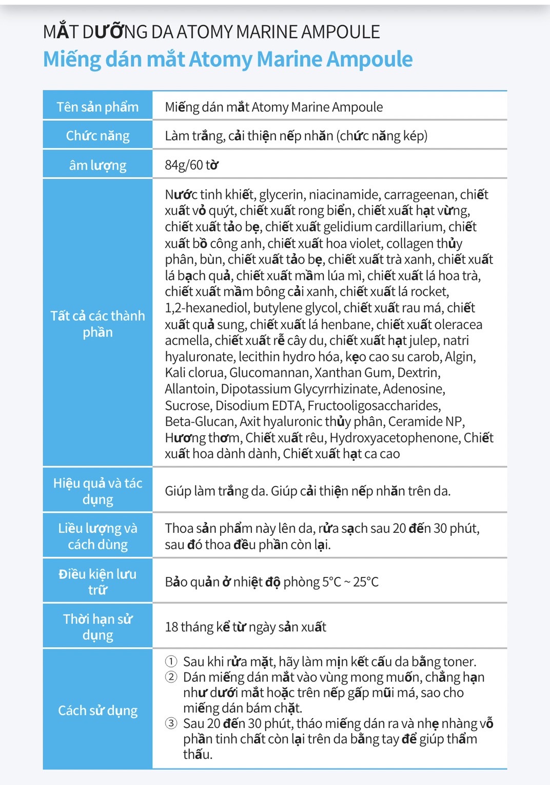 💥✅ #Atomy_Marine_Ampoule_Eye - Mặt nạ biển sâu