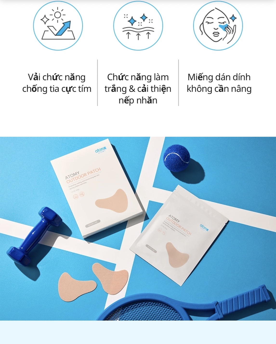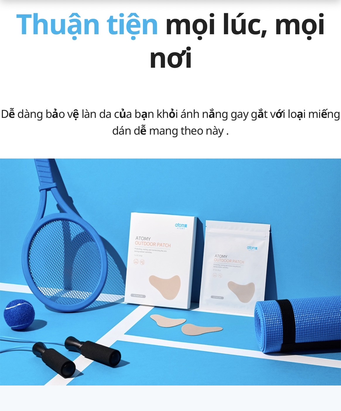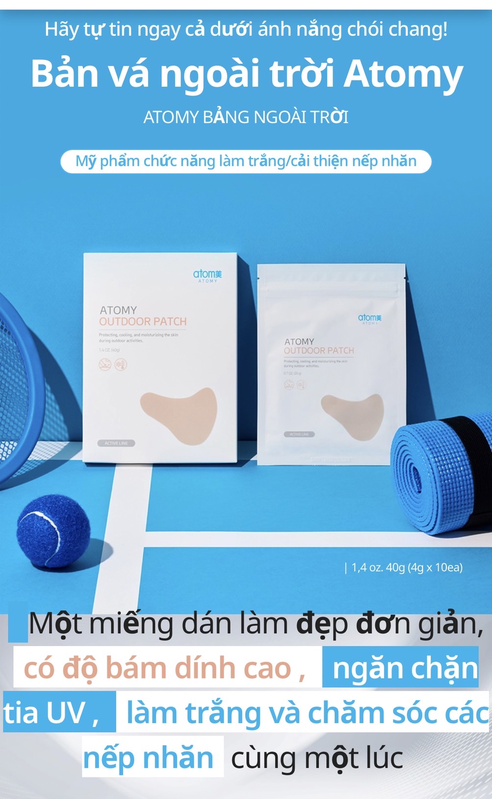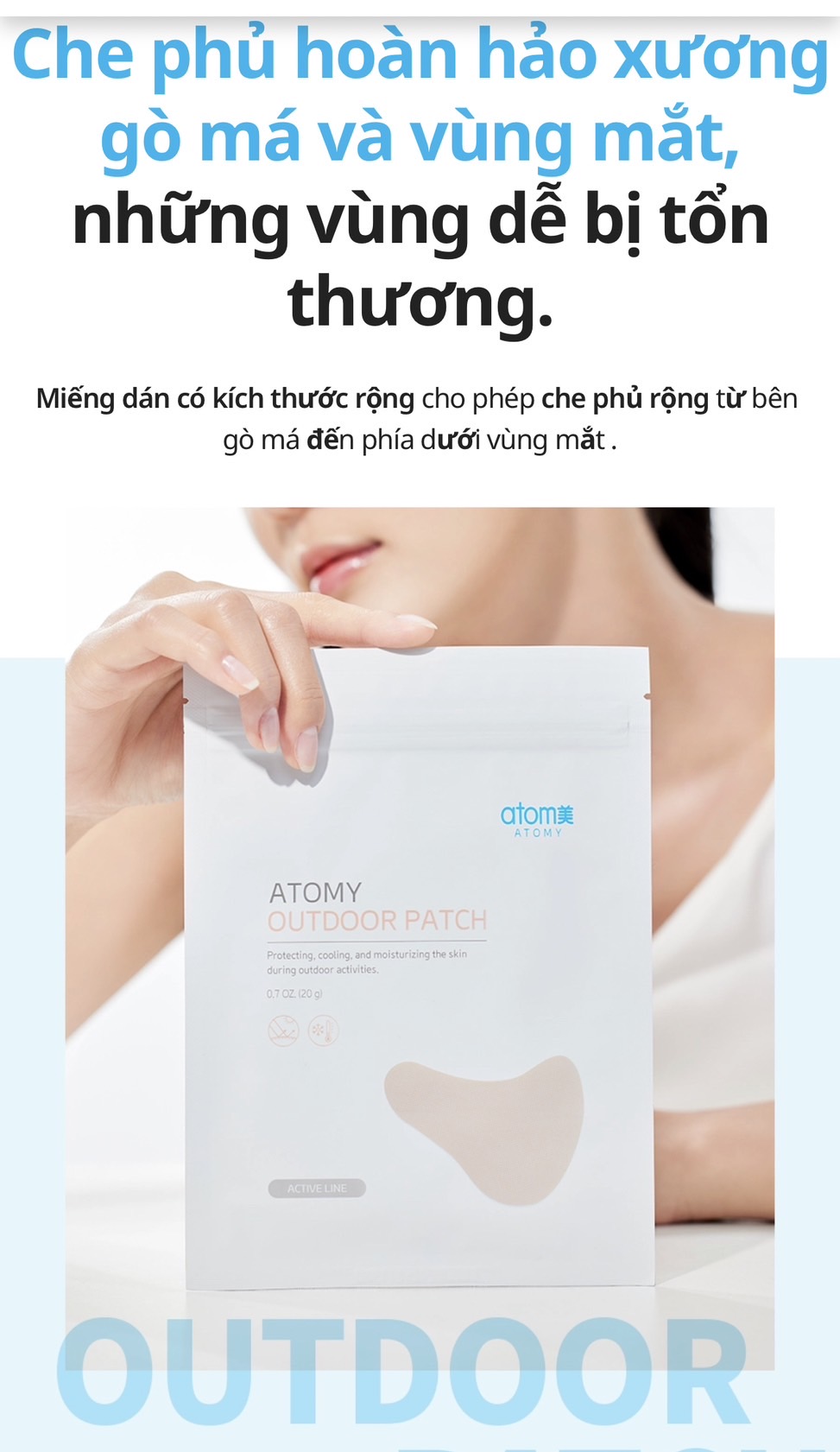 🌞 Atomy Outdoor Patch giúp ngăn ngừa tia UV, dưỡng trắng da, giảm nếp nhăn, bảo vệ da dưới tác động trực tiếp của ánh nắng mặt trời.