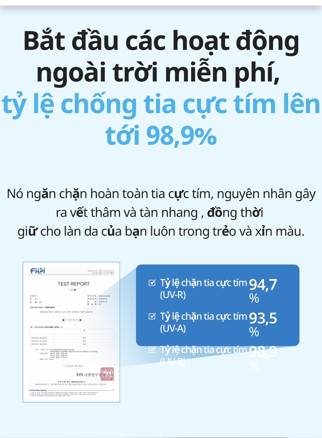 (Thời gian sử dụng có thể thay đổi tùy theo loại da, môi trường sử dụng, cường độ và thời gian hoạt động trực tiếp dưới ánh nắng mặt trời. Thời gian sử dụng tối đa lên đến 8h).