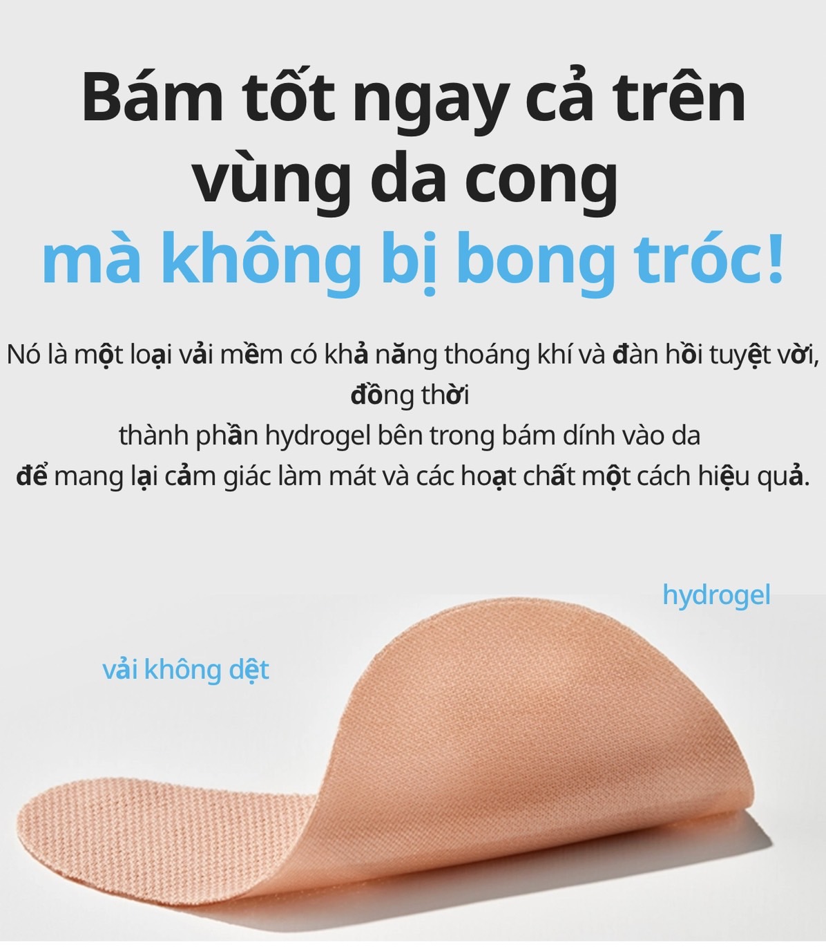 🌿 Sản phẩm được thiết kế dưới dạng miếng dán dưới mắt bằng một loại vải mềm có các lỗ thoáng khí và đàn hồi tuyệt vời, đồng thời thành phần Hydrogel bên trong bám chặt vào da mang lại cảm giác mát lạnh và thẩm thấu các hoạt chất một cách hiệu quả.