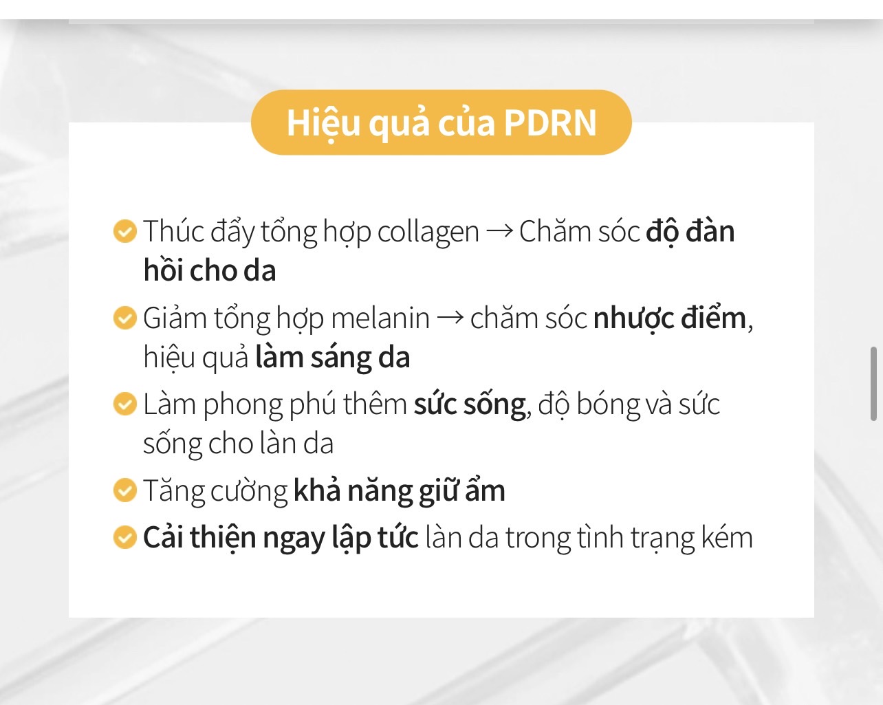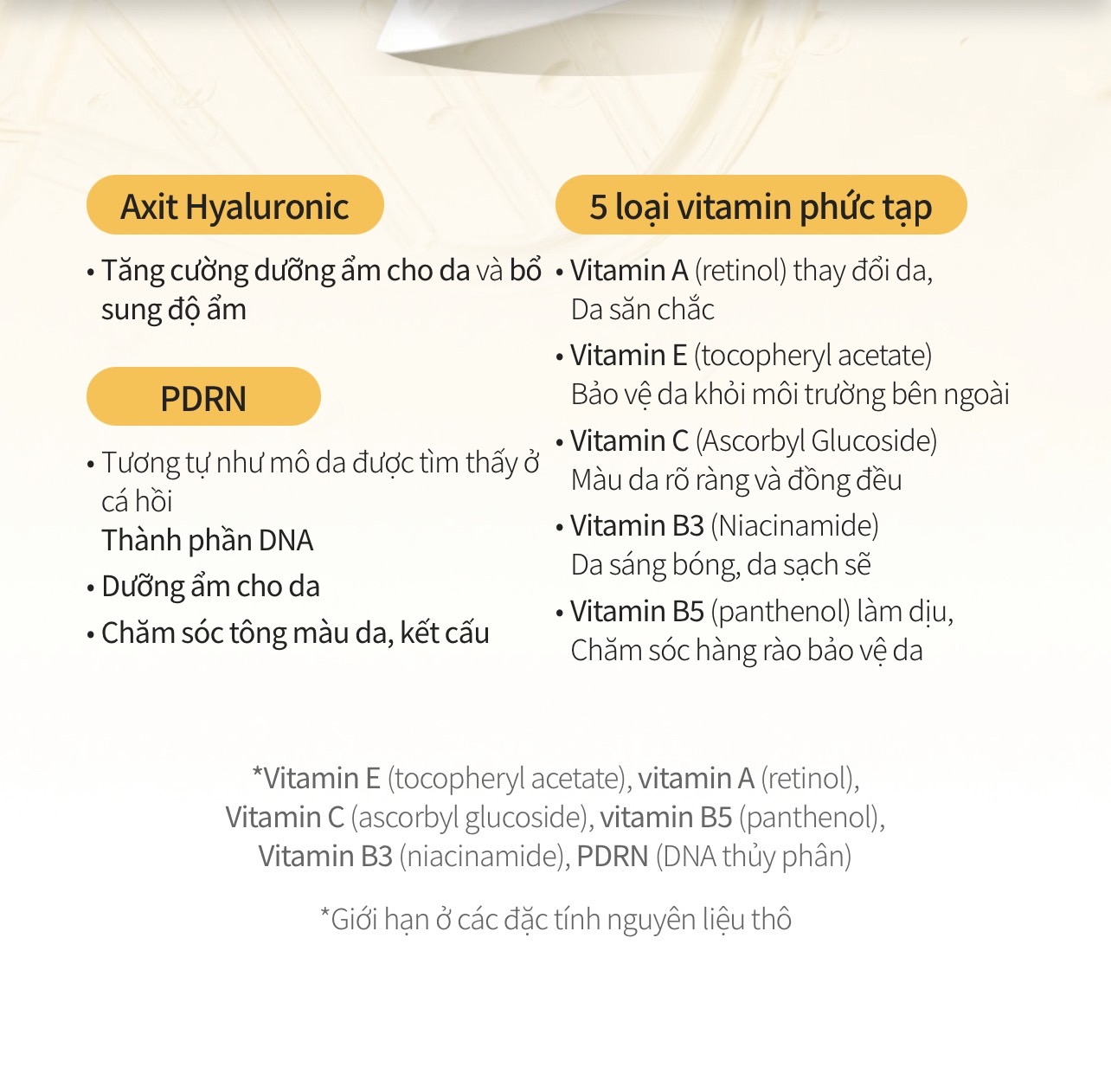 💥 Các hoạt chất được nghiên cứu chuyên sâu để cải thiện nếp nhăn chuyên sâu và độ đàn hồi: PDRN, 5 loại Vitamin làm trắng cùng 3 loại Peptide đàn hồi