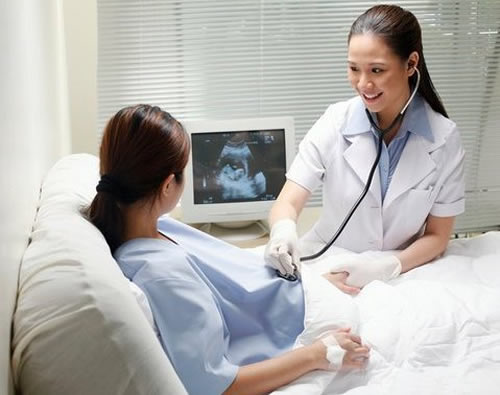 Nữ hộ sinh sẽ kiểm tra vị trí của em bé trong tử cung bằng cách sờ nắn bụng của bạn và cô sẽ lắng nghe nhịp tim của bé bằng ống nghe hay dụng cụ trợ thính (sonicaid). Cô có thể gắn vào bụng của bạn một cái micro trong khoảng 20 phút để ghi âm nhịp tim của bé. Điều này giúp cho cô biết được chắc chắn em bé có nhận được đủ oxy trong những cơn co thắt không.