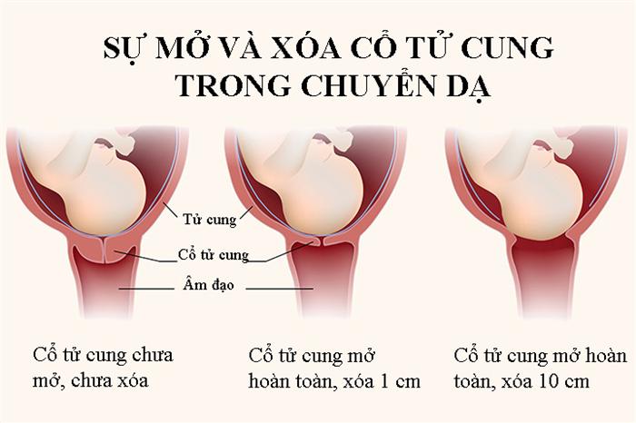 Sau dó, các cơn co nhẹ làm cho cổ tử cung như bị xóa đi (hóa mỏng).